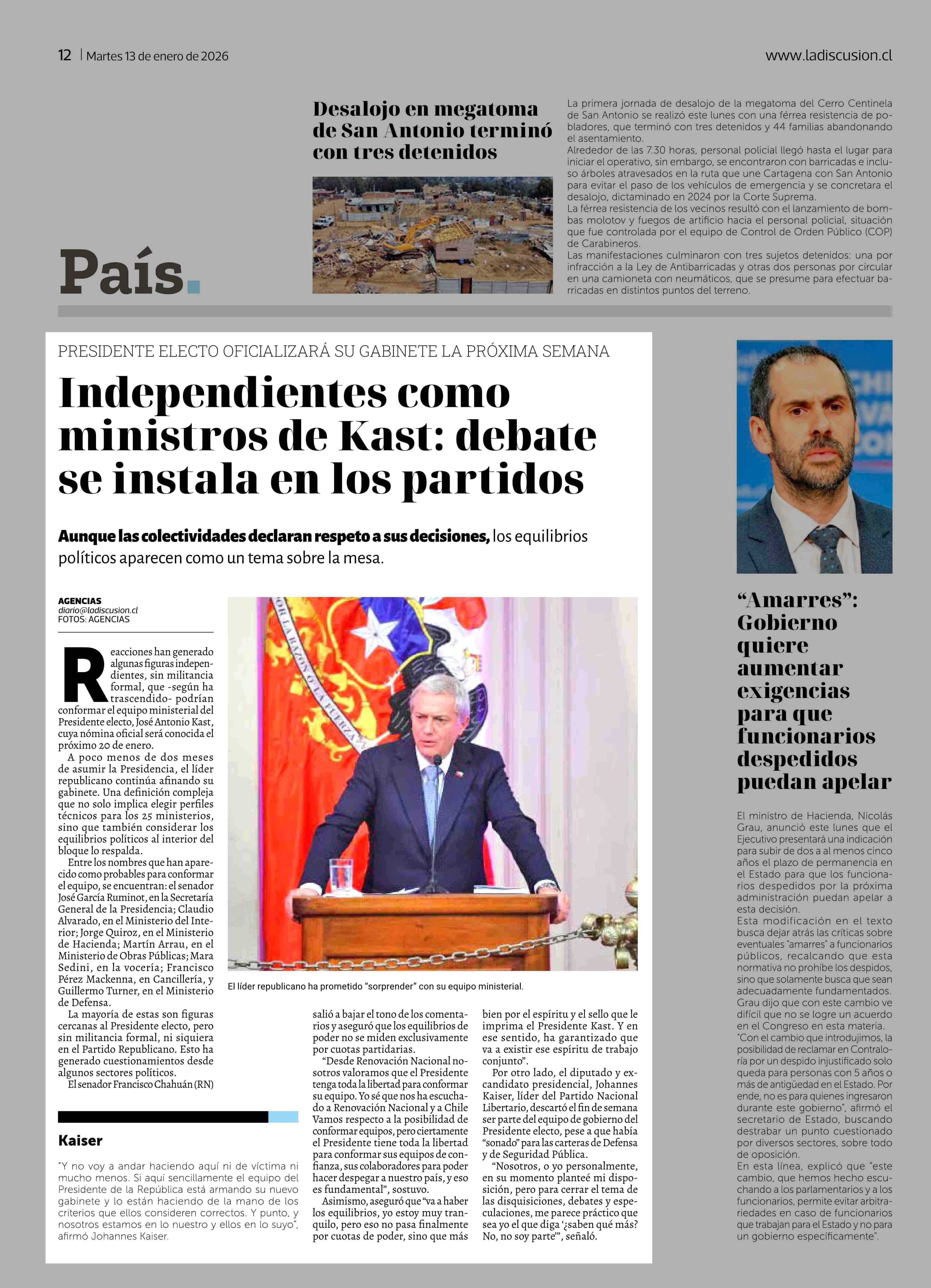 Título: Independientes como ministros de Kast: debate se instala en los partidos