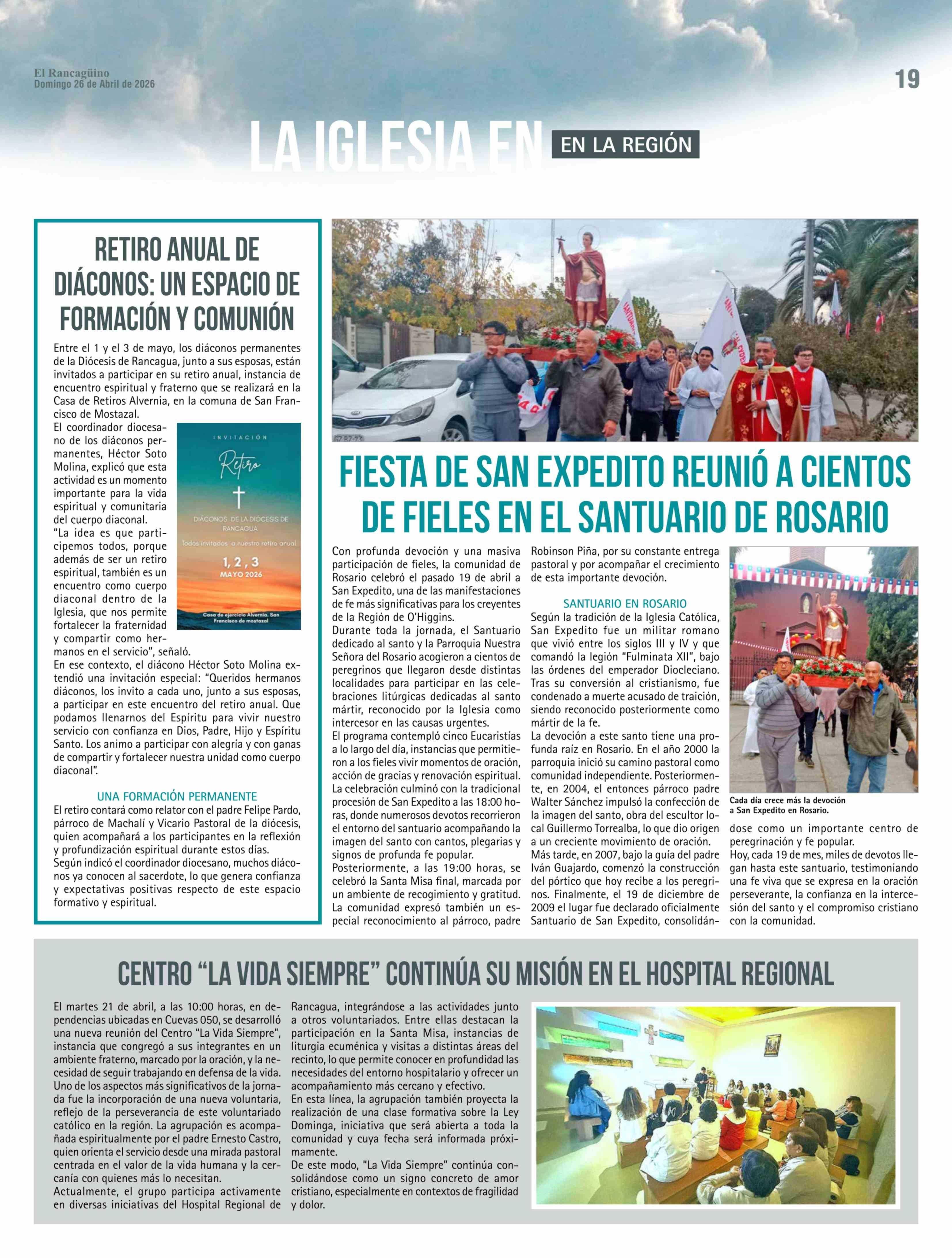 CENTRO "LA VIDA SIEMPRE" CONTINÚA SU MISIÓN EN EL HOSPITAL REGIONAL 26-04-2026 El Rancagüino |