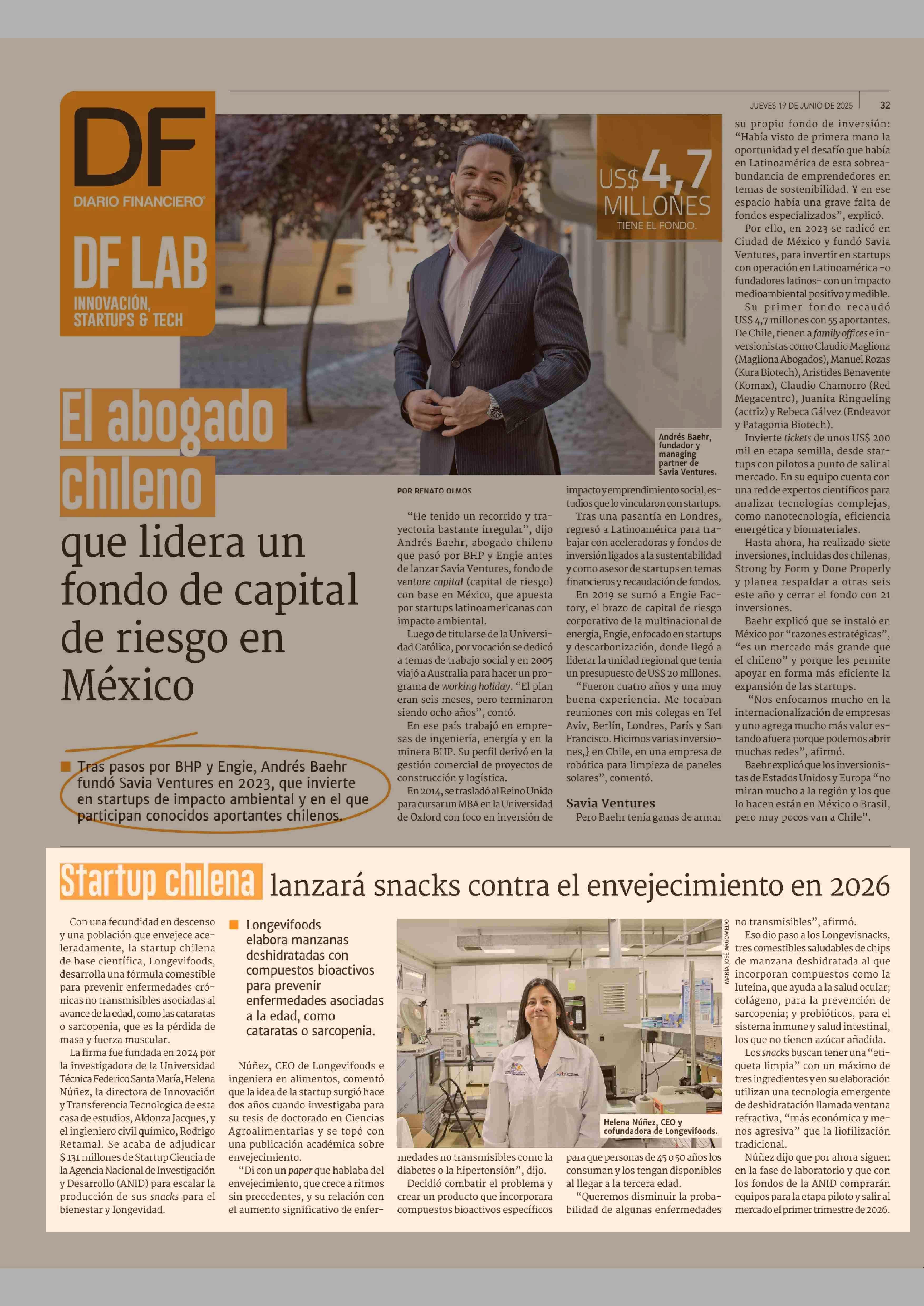 Startup chilena lanzará snacks contra el envejecimiento en 2026 19-06-2025 Diario Financiero |