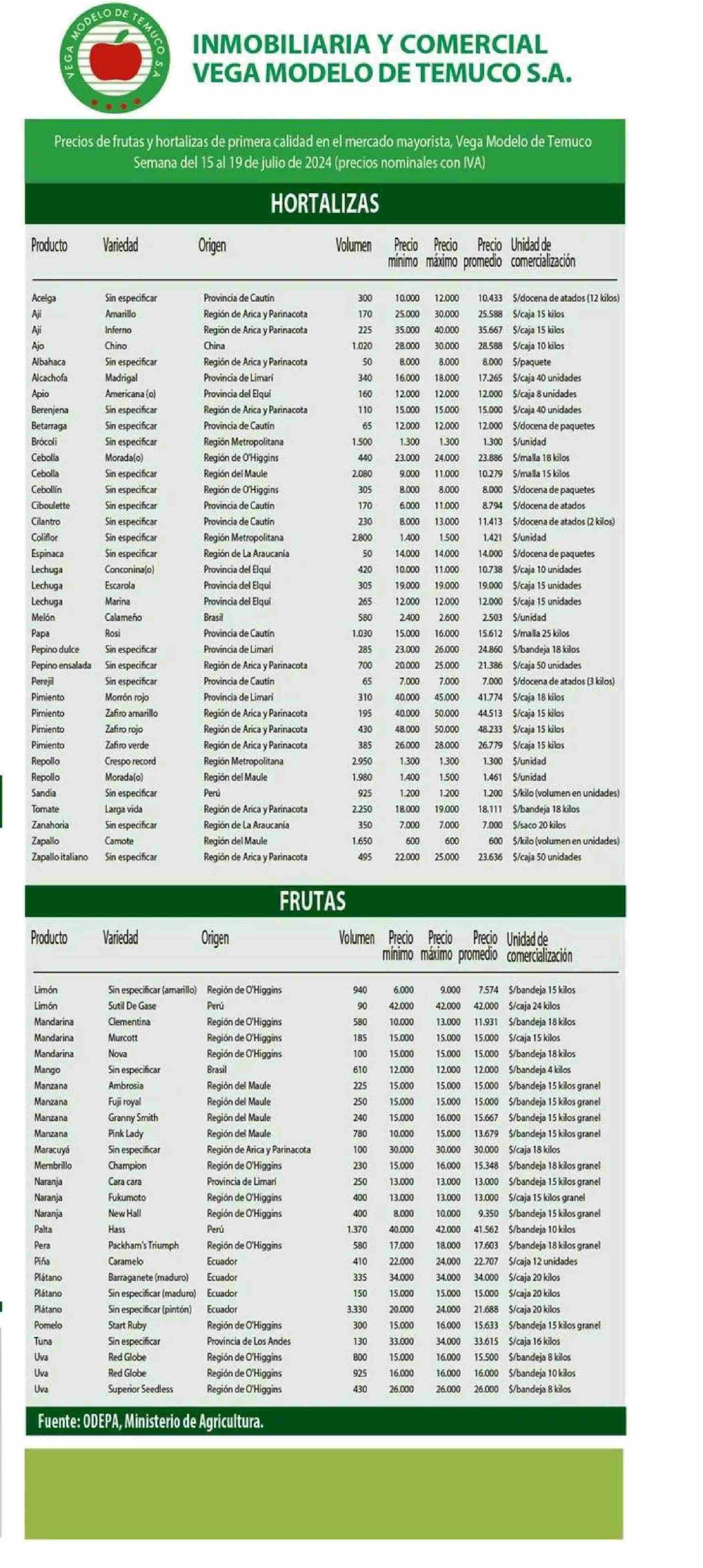 INMOBILIARIA Y COMERCIAL VEGA MODELO DE TEMUCO S.A. 22-07-2024 Campo Sureño - Regiones IX, X y XIV |