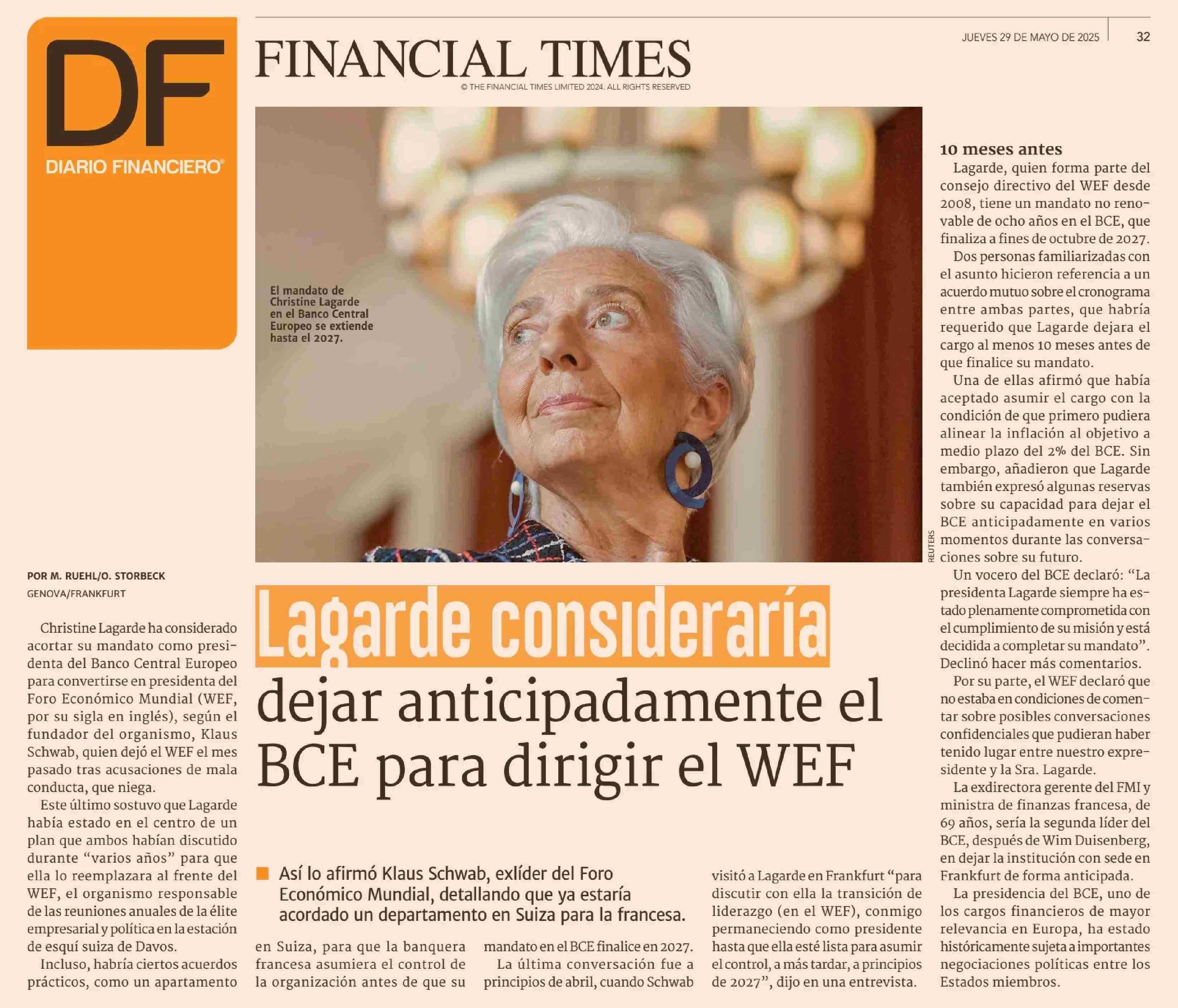 Título: Lagarde consideraría dejar anticipadamente el BCE para dirigir el WEF