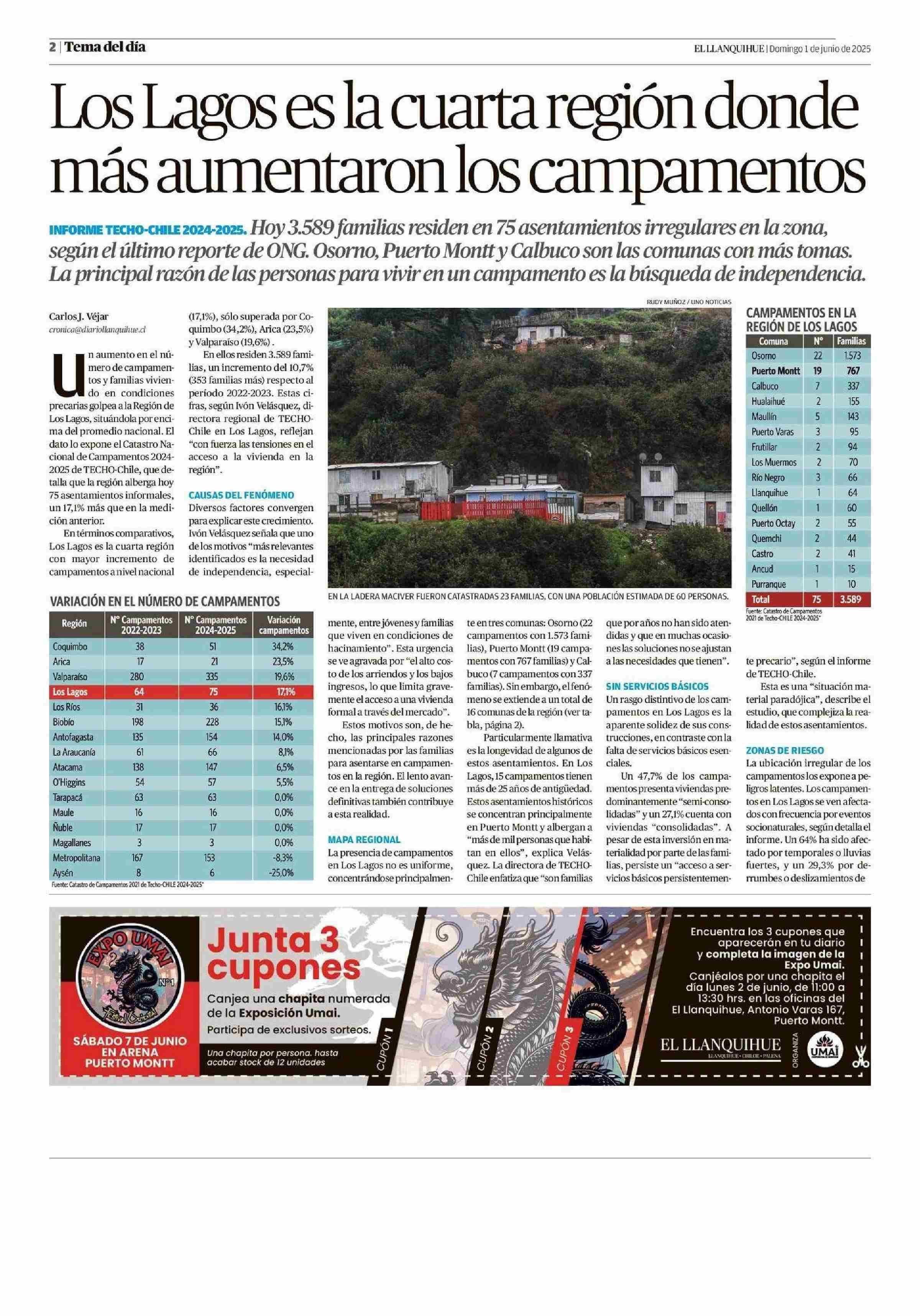 | Título: | Los Lagos es la cuarta región donde más aumentaron los campamentos |