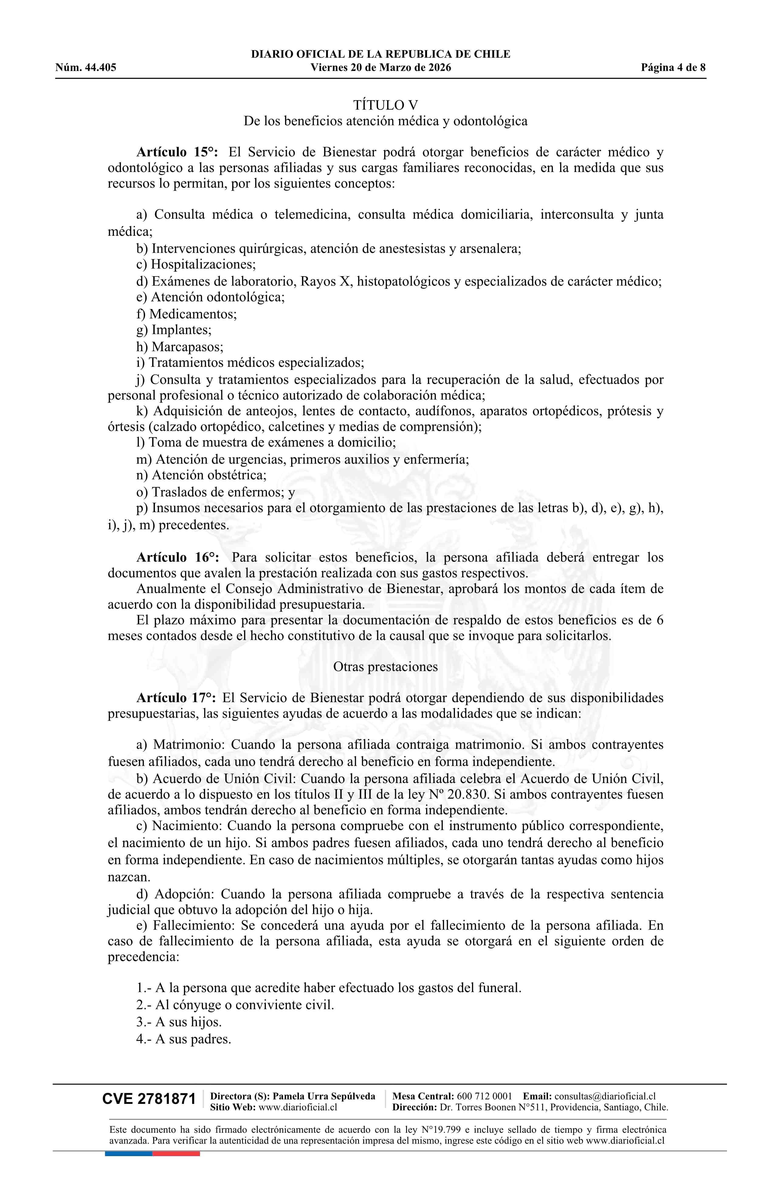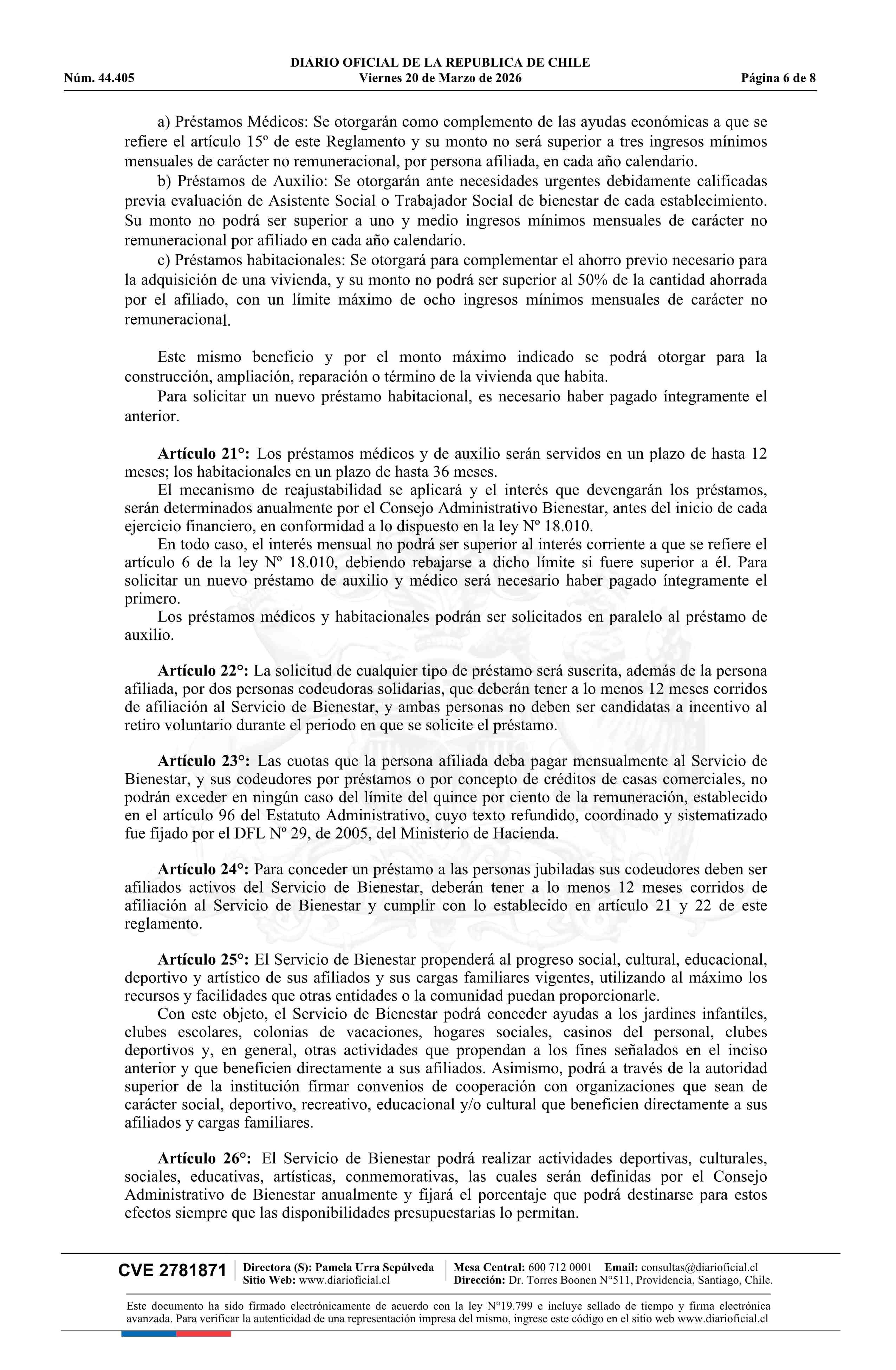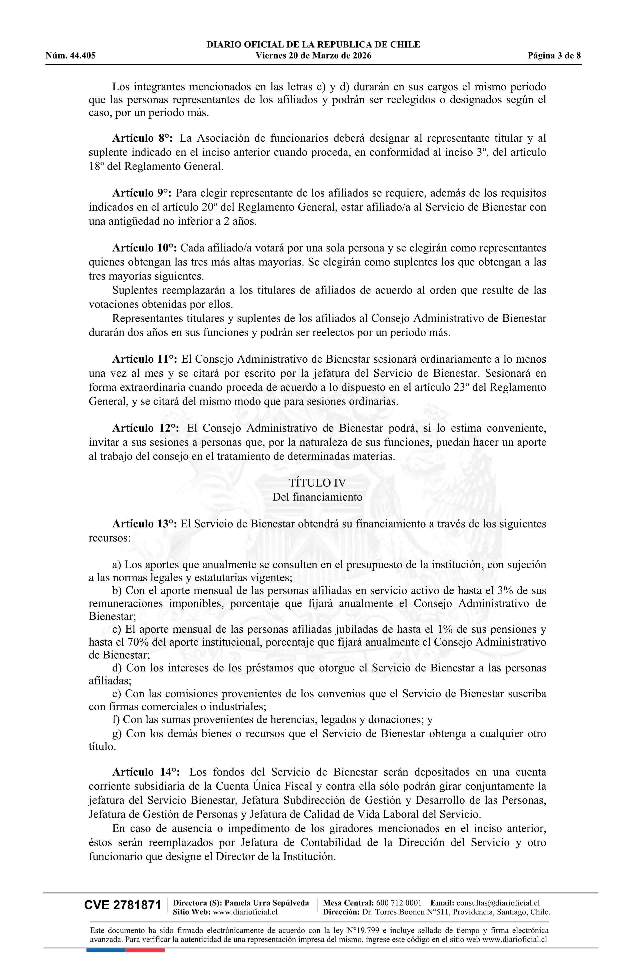 Decreto exento número 18, de 2026.- Aprueba Reglamento del Servicio de Bienestar del Servicio de Salud Valparaíso-San Antonio y deroga el decreto Nº 187 exento, de 2020 20-03-2026 Diario Oficial Edición Electrónica |