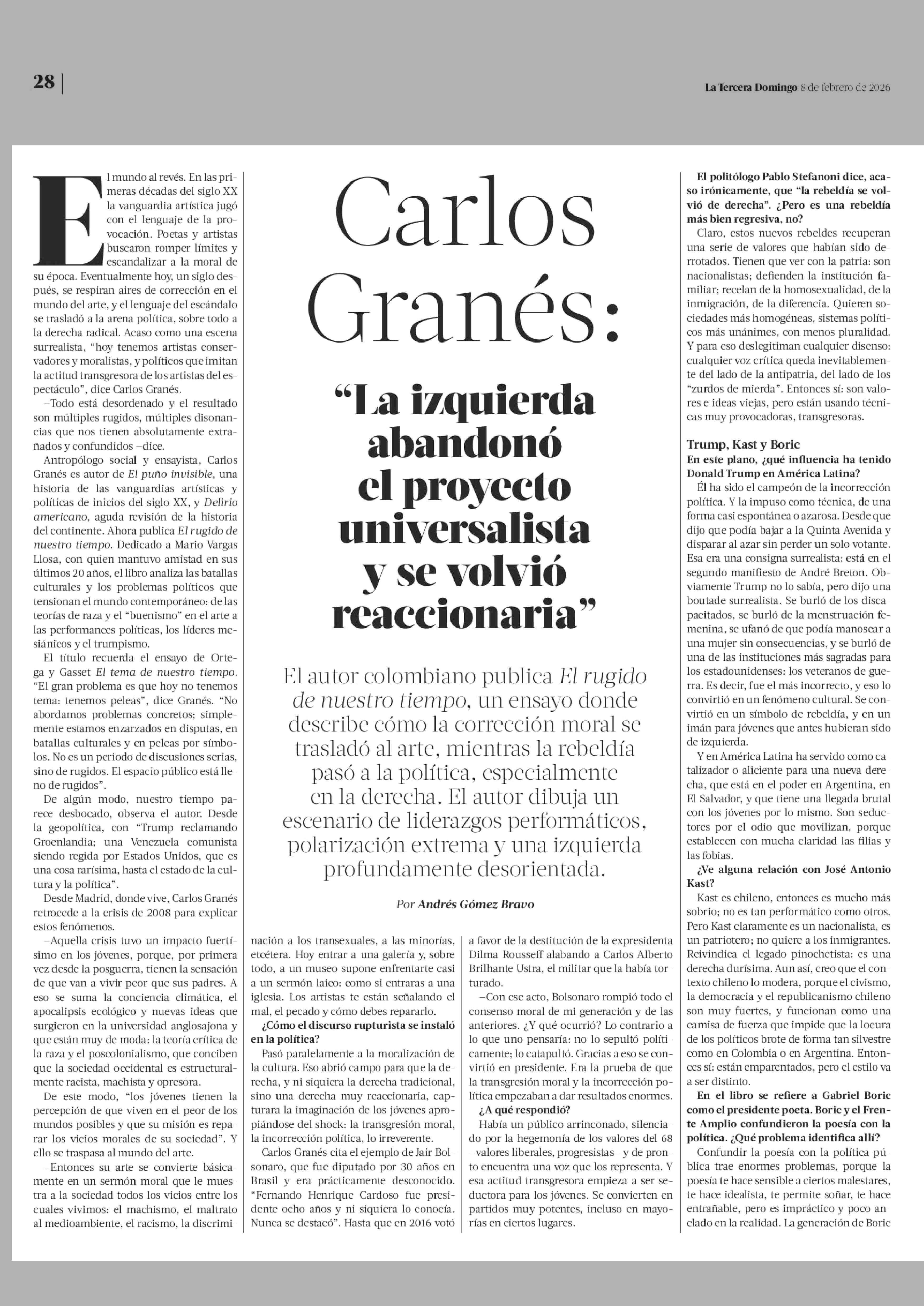 Título: Carlos Granés: “La izquierda abandonó el proyecto universalista y se volvió reaccionaria”