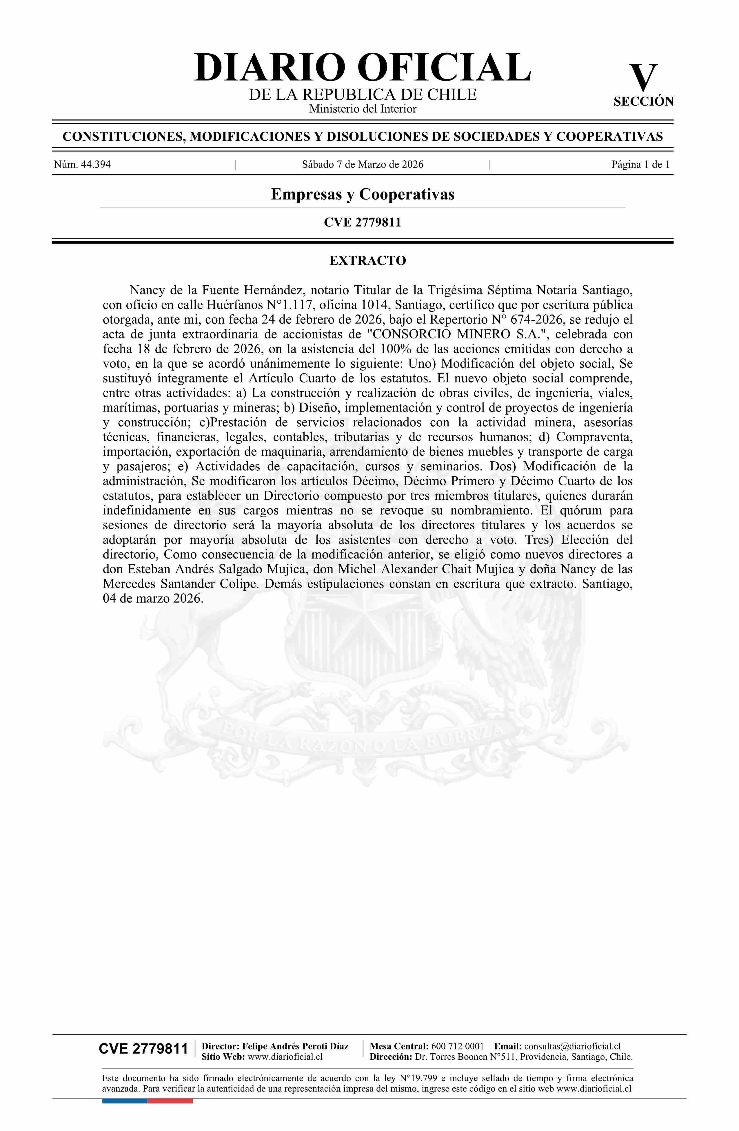 Fuente: Diario Oficial Edición Electrónica (Diario Oficial de Chile - 5 Empresas Y Cooper) Página(s): 89