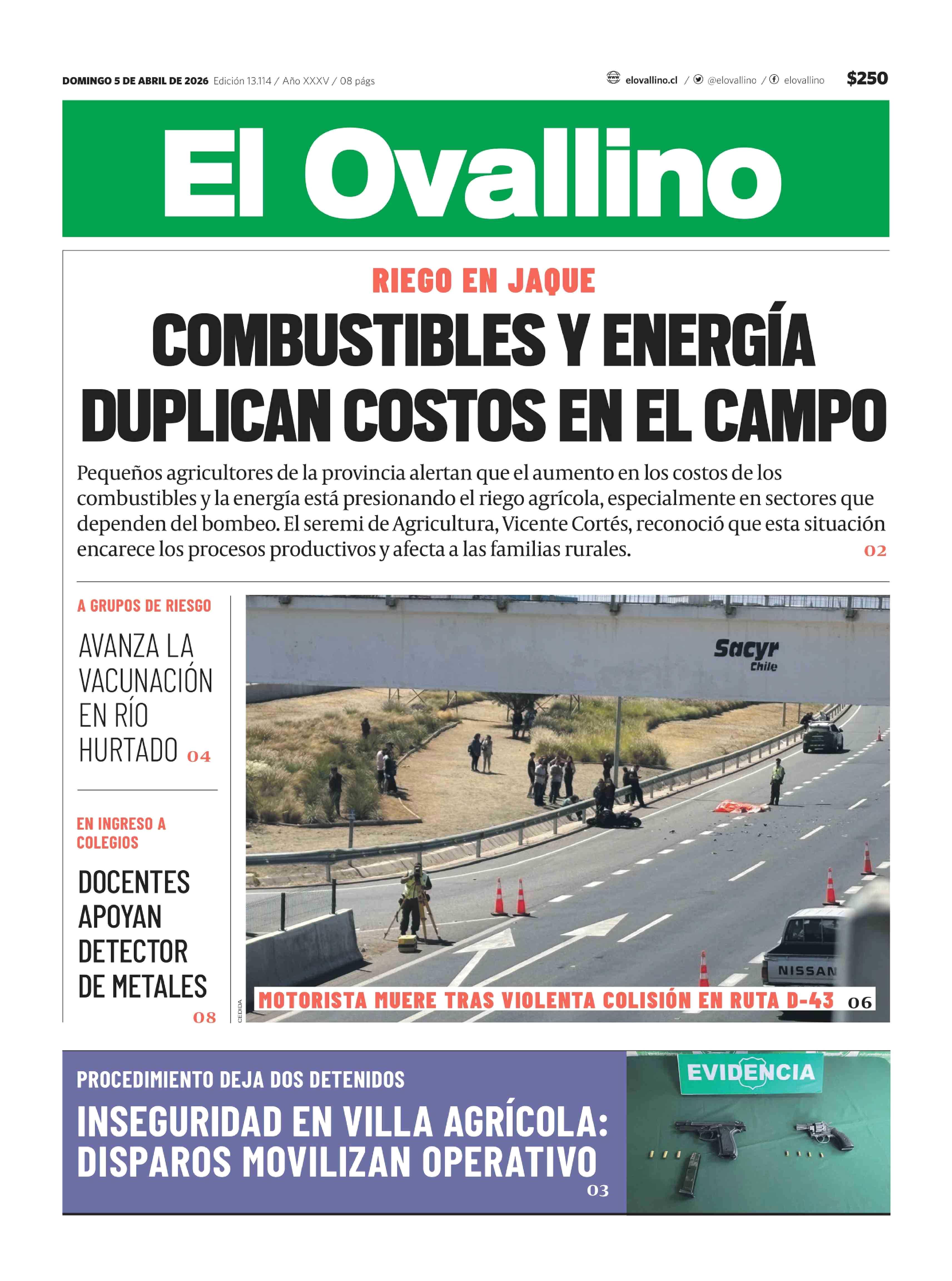 PORTADA EL OVALLINO CHILE 05-04-2026 El Ovallino |
