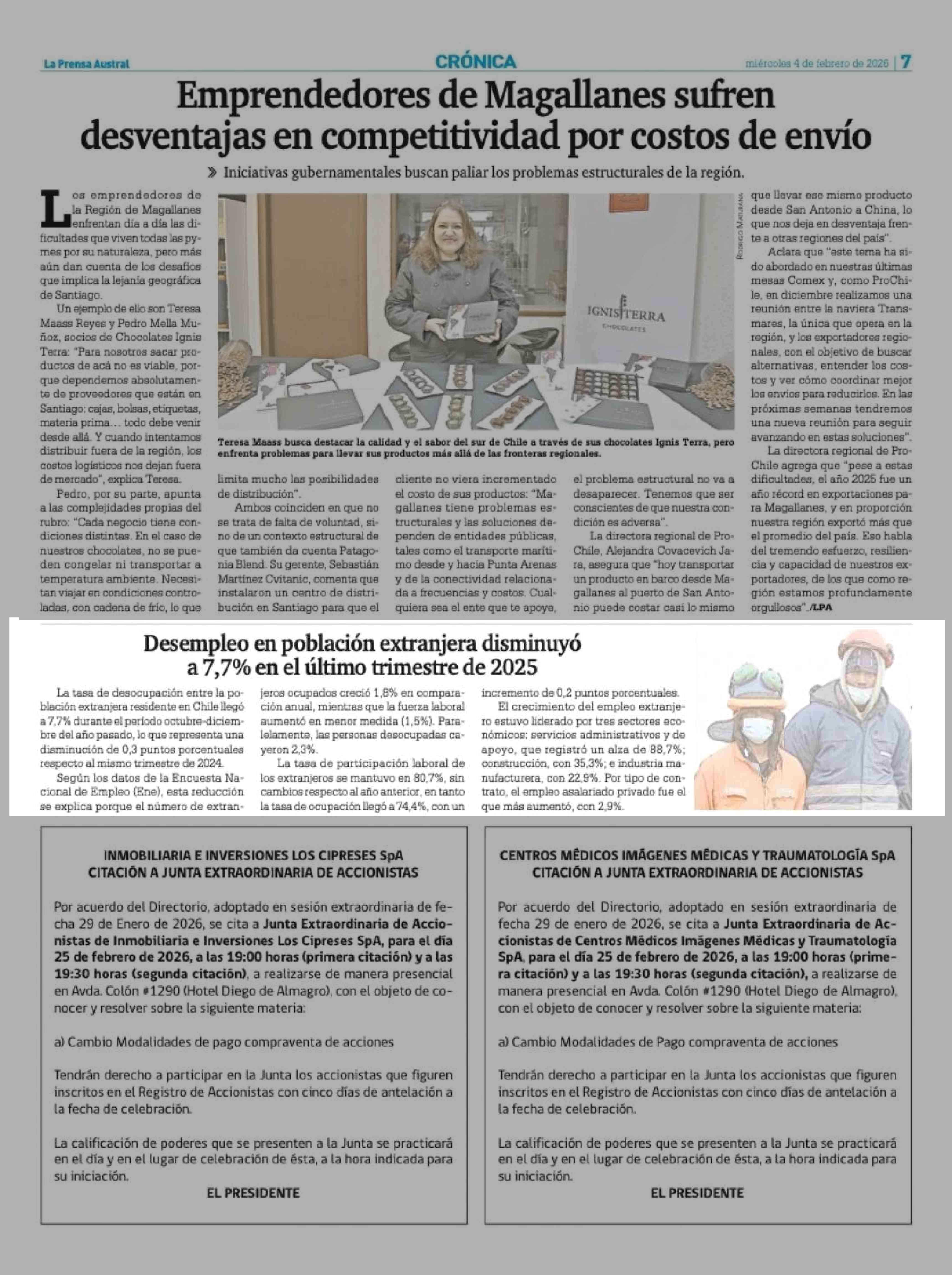 Desempleo en población extranjera disminuyó a 7,7% en el último trimestre de 2025 04-02-2026 La Prensa Austral |