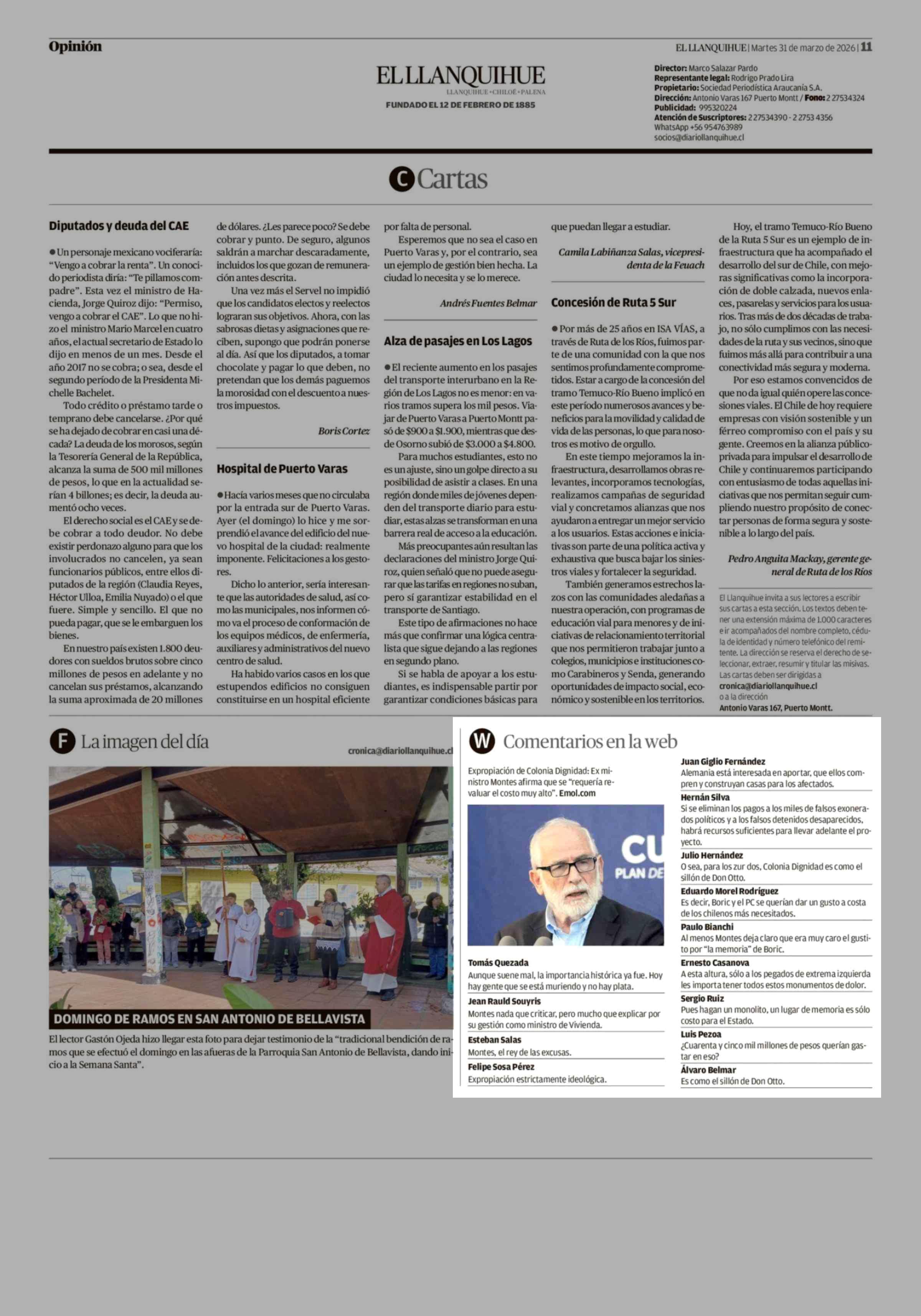 Comentarios en la web 31-03-2026 El Llanquihue |