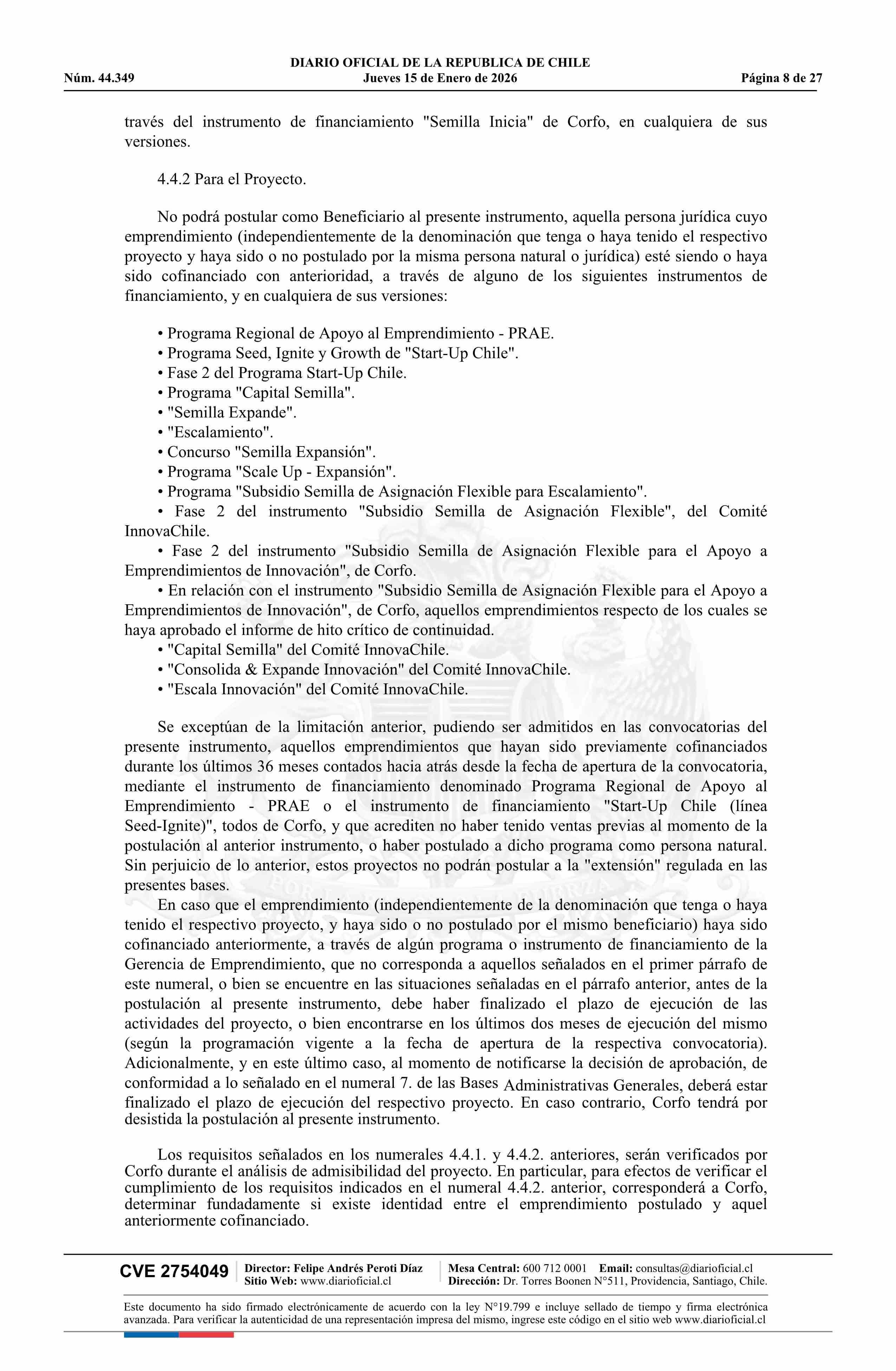 Título: Resolución exenta número 24, de 2026.- Modifica bases del instrumento de financiamiento denominado Semilla Expande y aprueba su nuevo texto