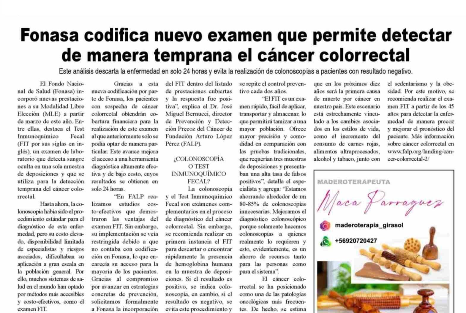 Fonasa codifica nuevo examen que permite detectar de manera temprana el cáncer colorrectal 29-04-2025 Diario VI Región |