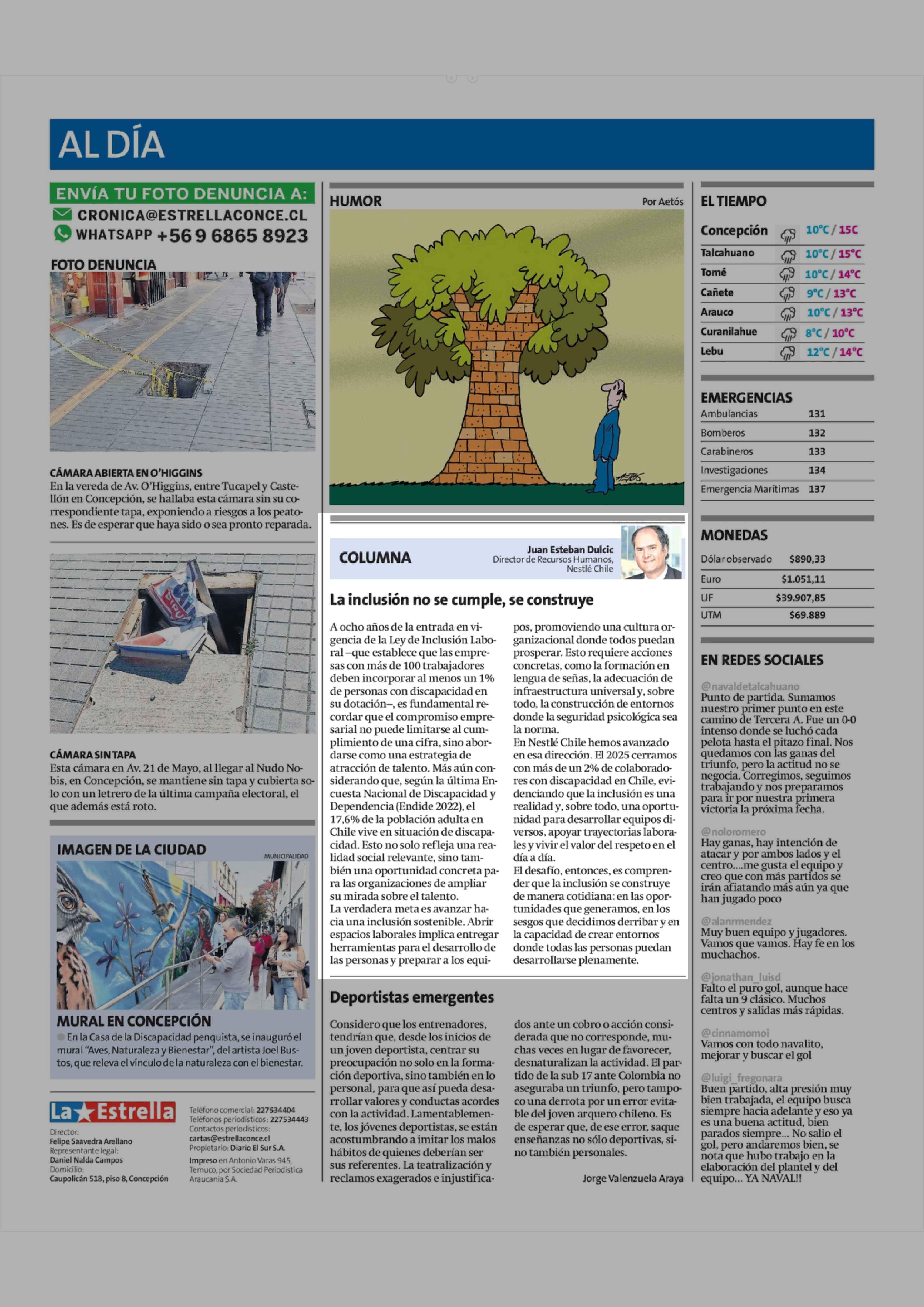 Columnas de Opinión: La inclusión no se cumple, se construye 14-04-2026 La Estrella de Concepción |