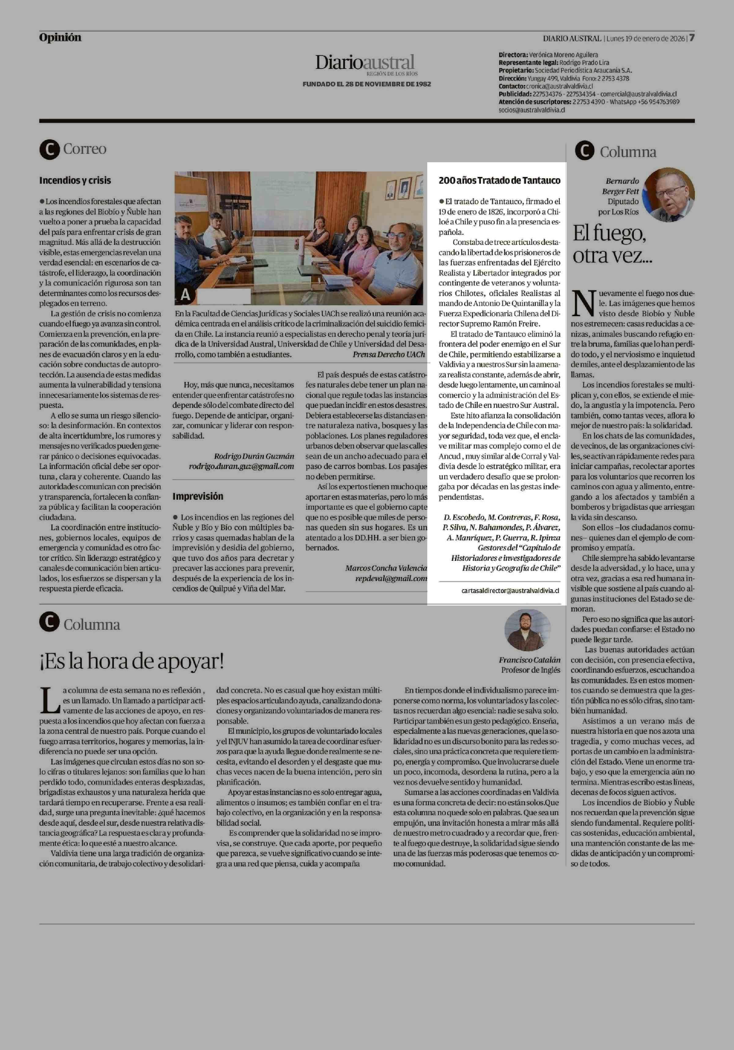 Cartas: 200 años Tratado de Tantauco 19-01-2026 Diario Austral Región de Los Ríos |