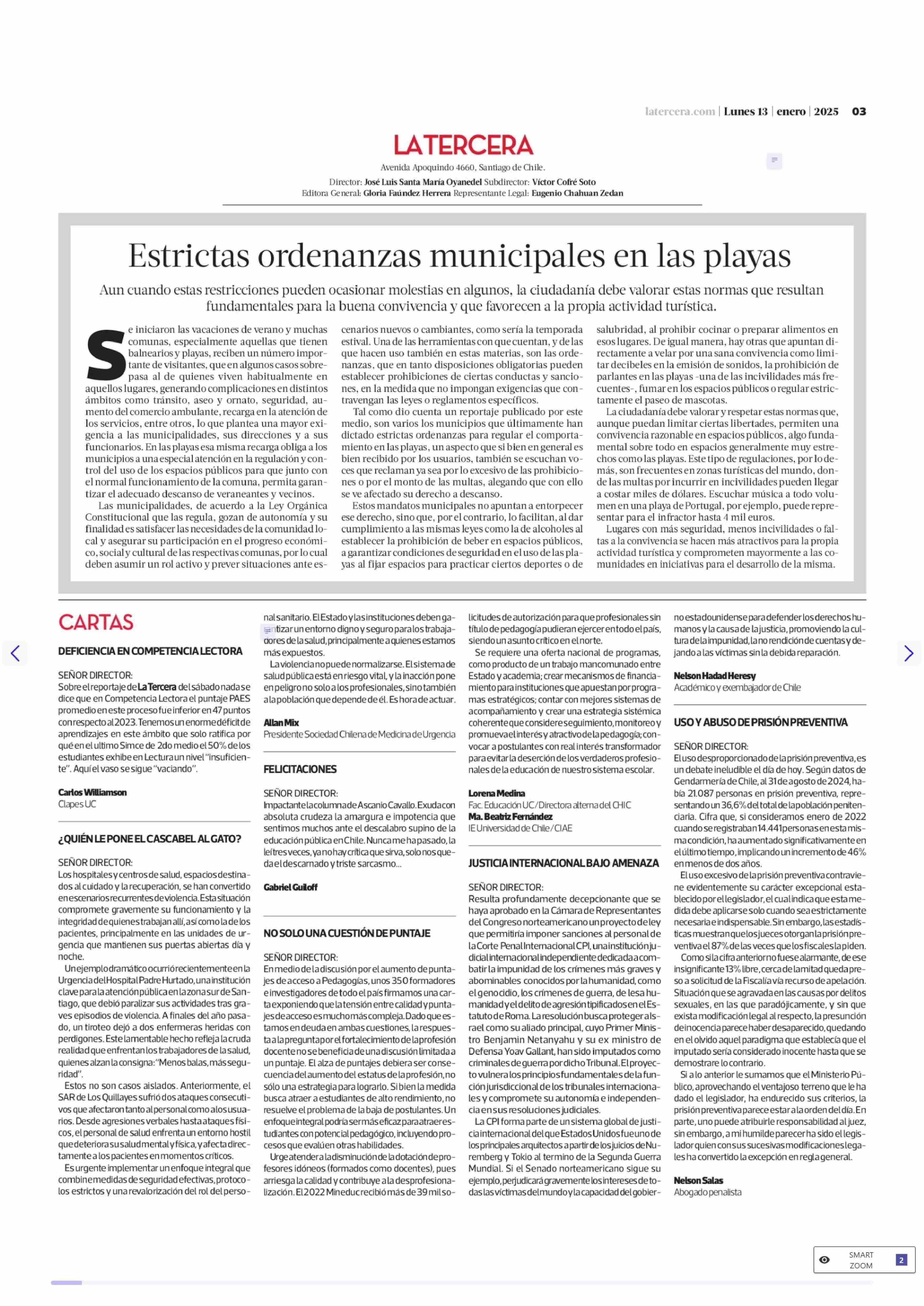 NO SOLO UNA CUESTIÓN DE PUNTAJE 13-01-2025 La Tercera |