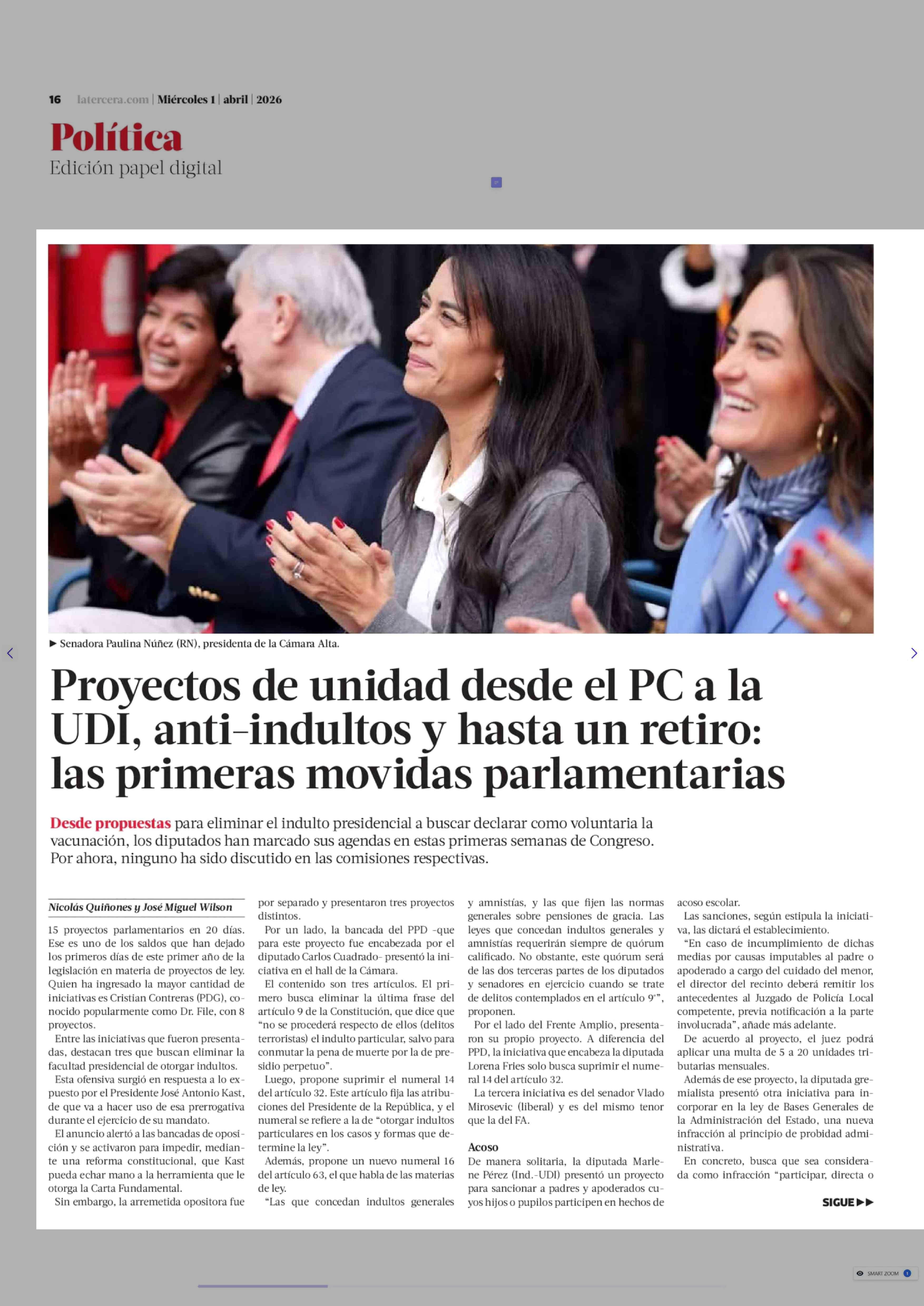 Título: Proyectos de unidad desde el PC a la UDI, anti-indultos y hasta un retiro: las primeras movidas parlamentarias