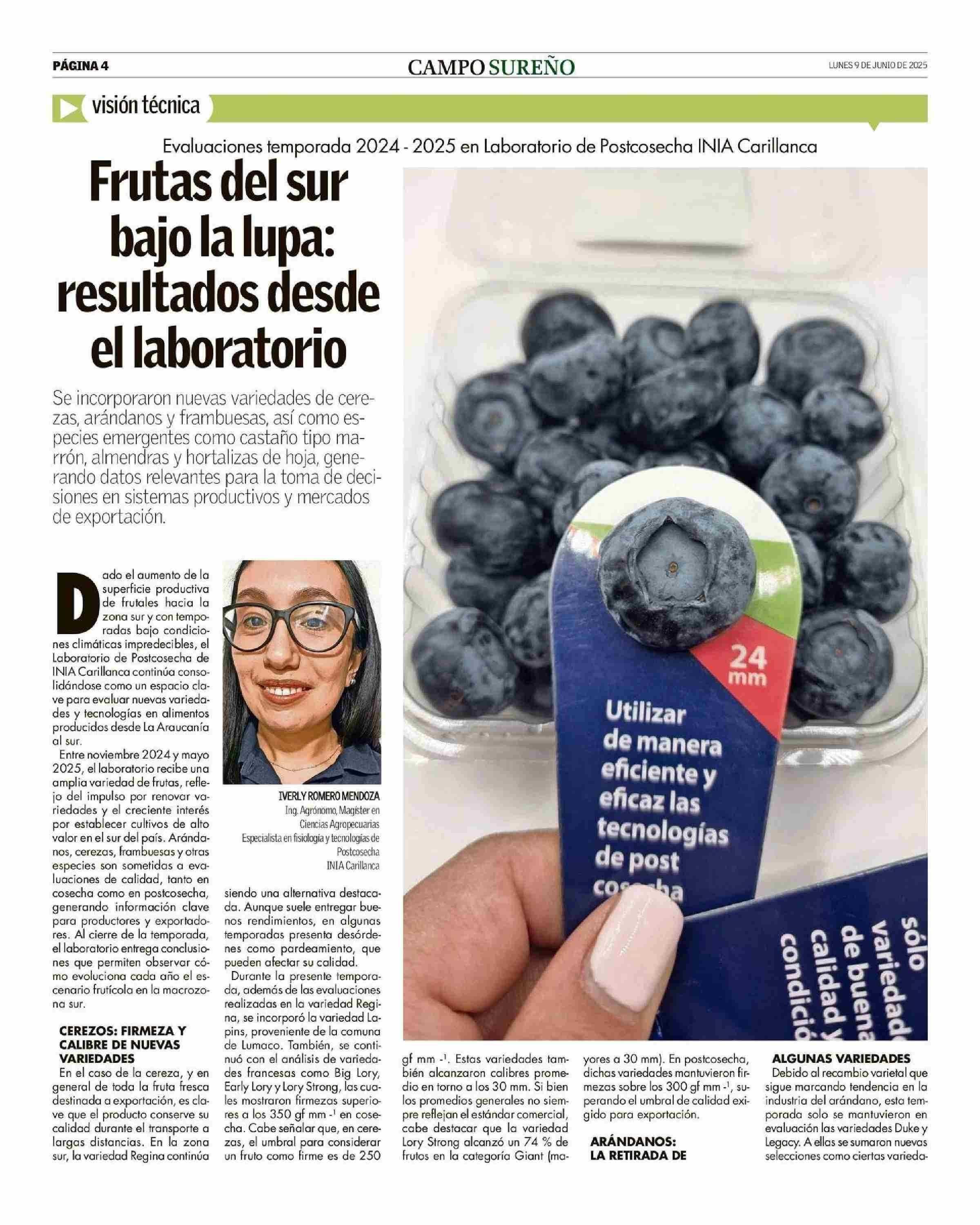 Frutas del sur bajo la lupa: resultados desde el laboratorio 09-06-2025 Campo Sureño - Regiones IX, X y XIV |