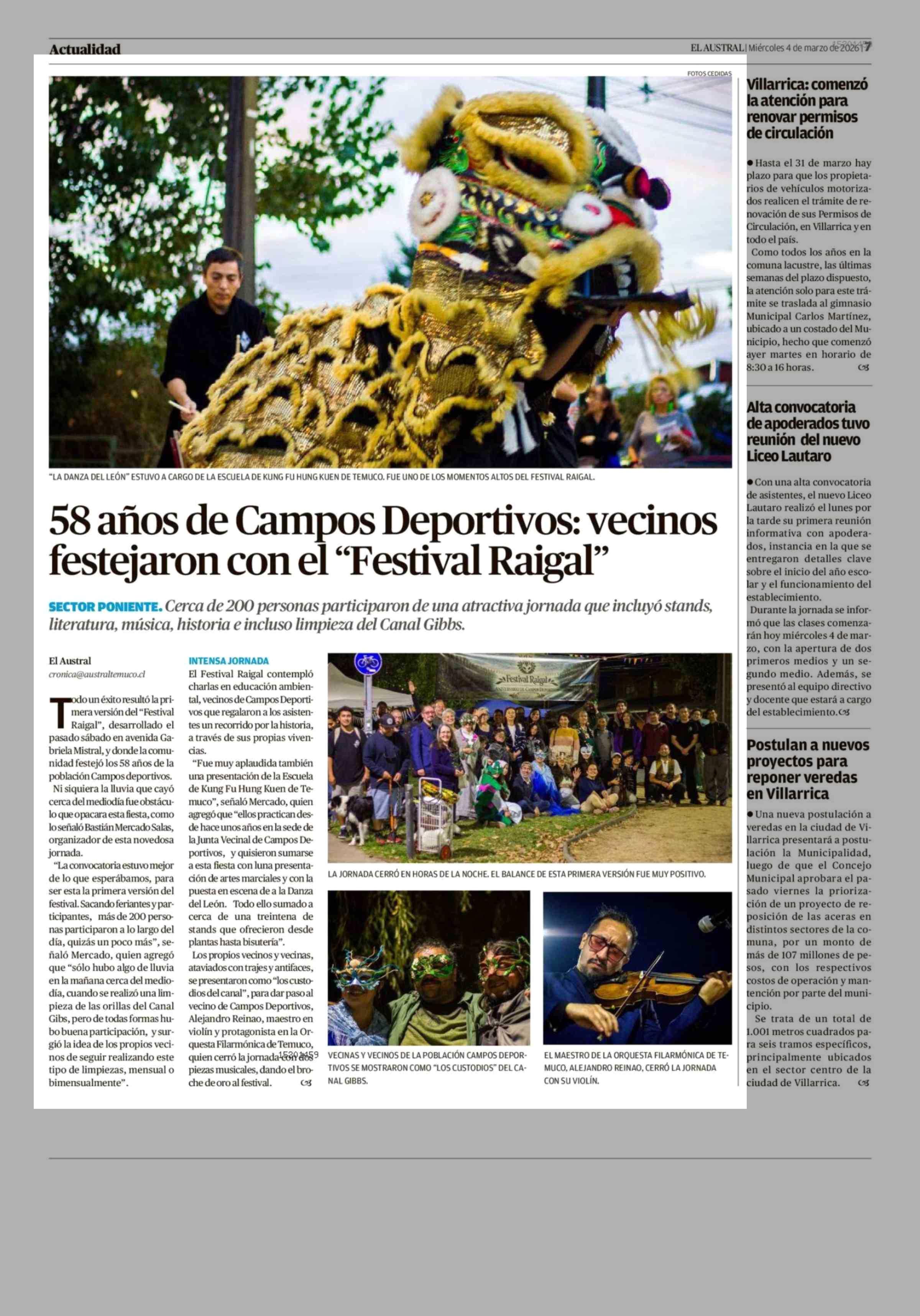 Fecha: 04-03-2026 Sector: Noticia general Región: Región de la Araucanía