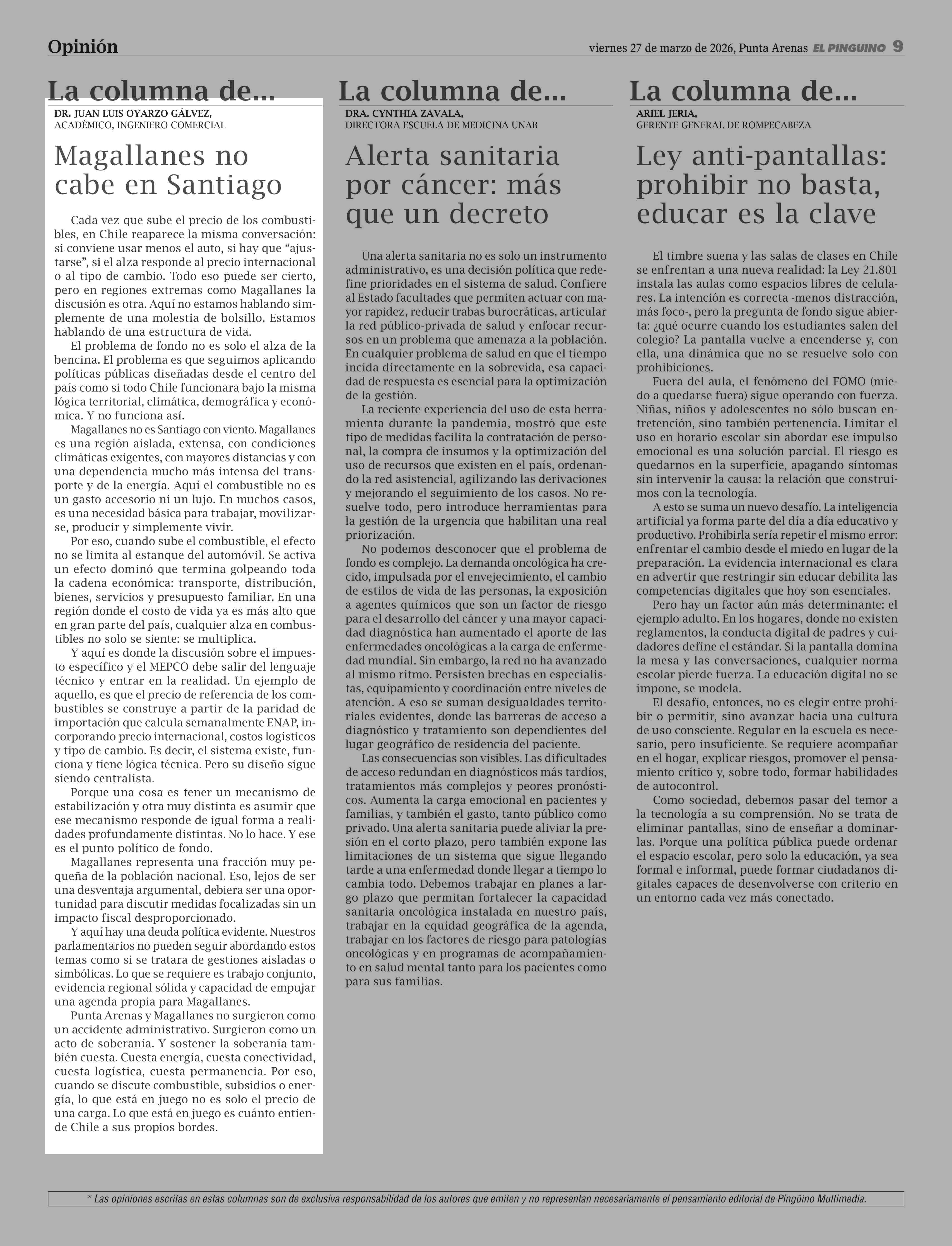 Fecha: 27-03-2026 Sector: Columnas de Opinión Región: Región de Magallanes y de la Antártica Chilena