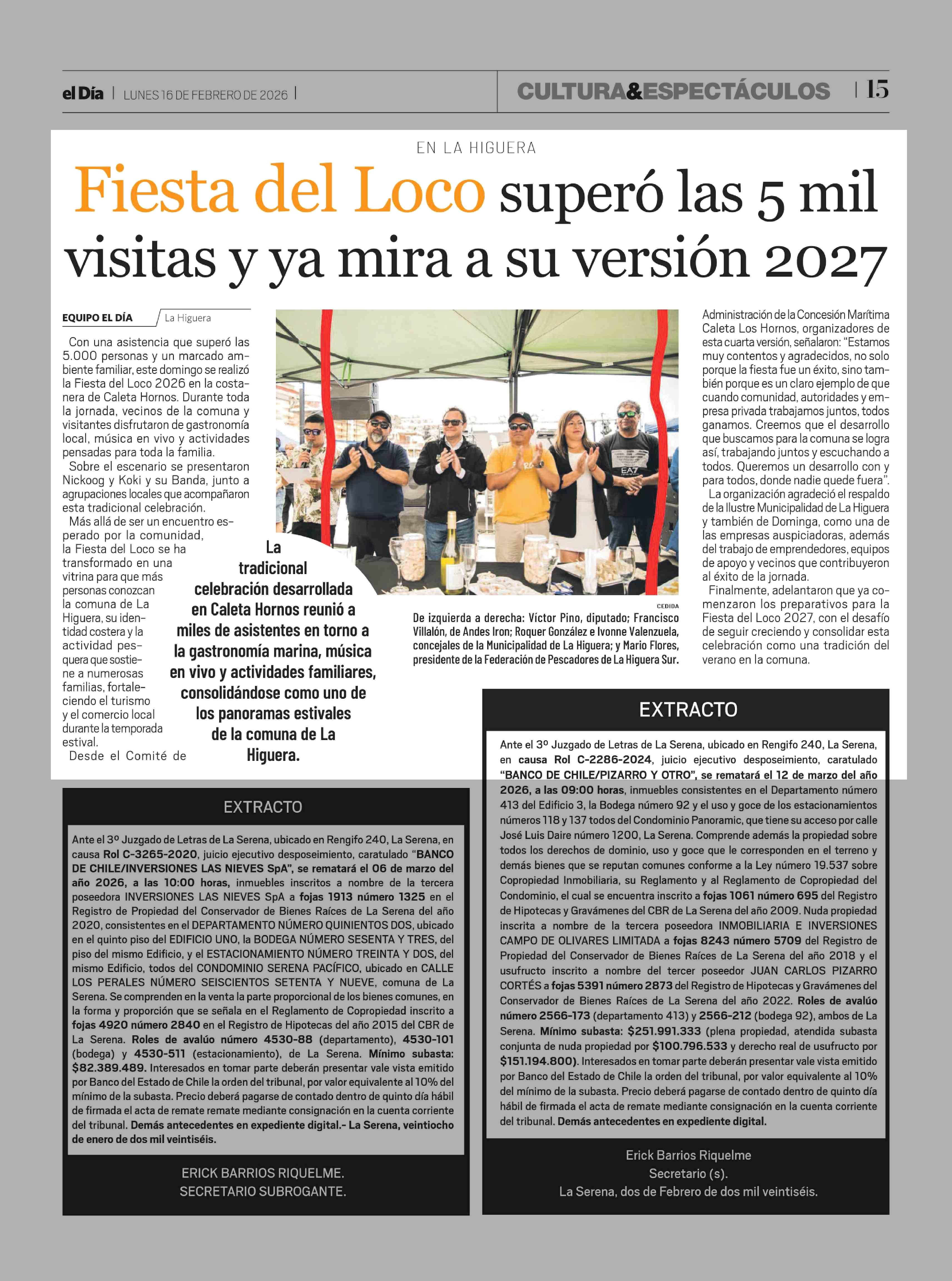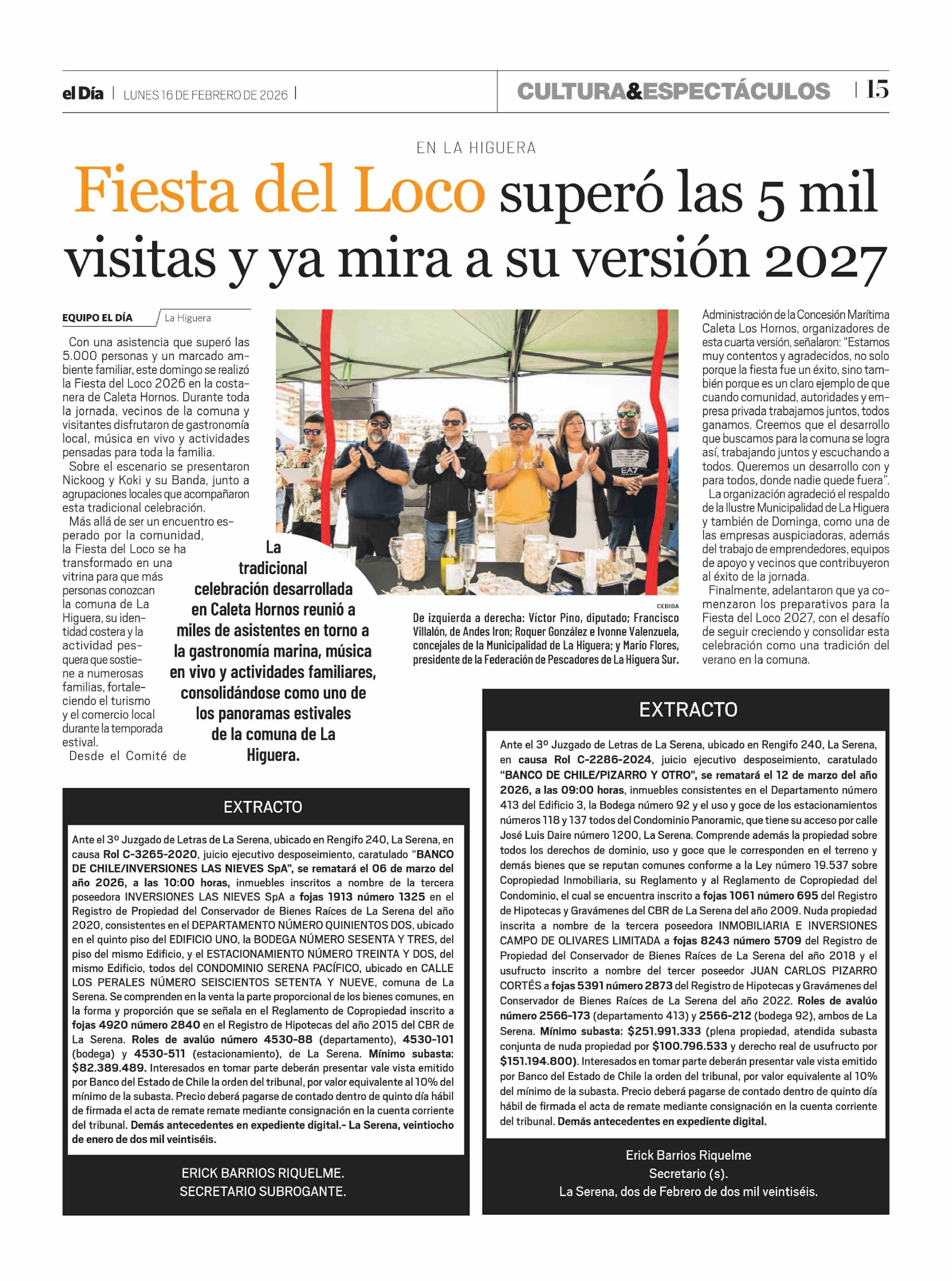 Fiesta del Loco superó las 5 mil visitas y ya mira a su versión 2027 16-02-2026 El Día |