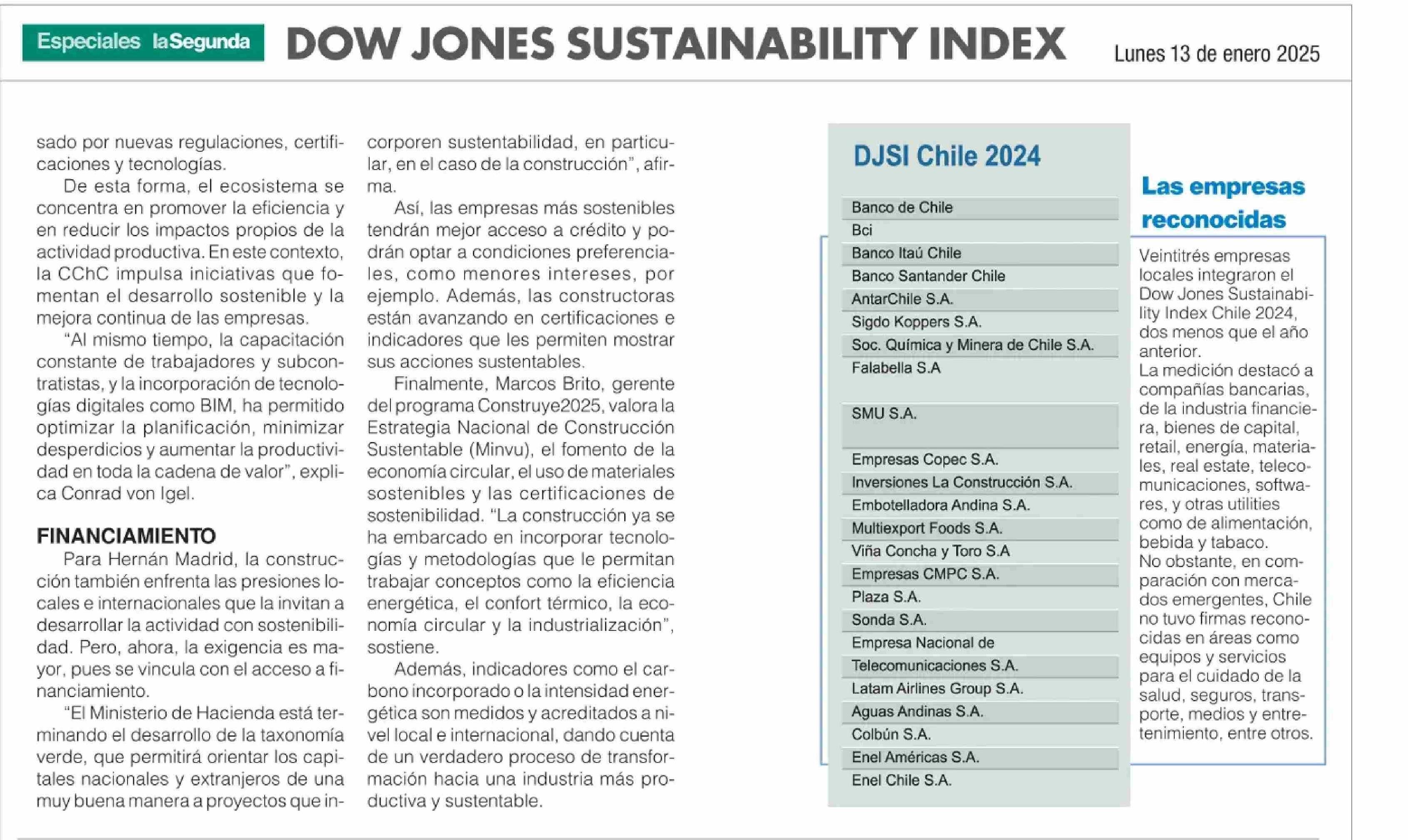 sostenibilidad: motor de la innovación, la eficiencia y la resiliencia 13-01-2025 La Segunda |