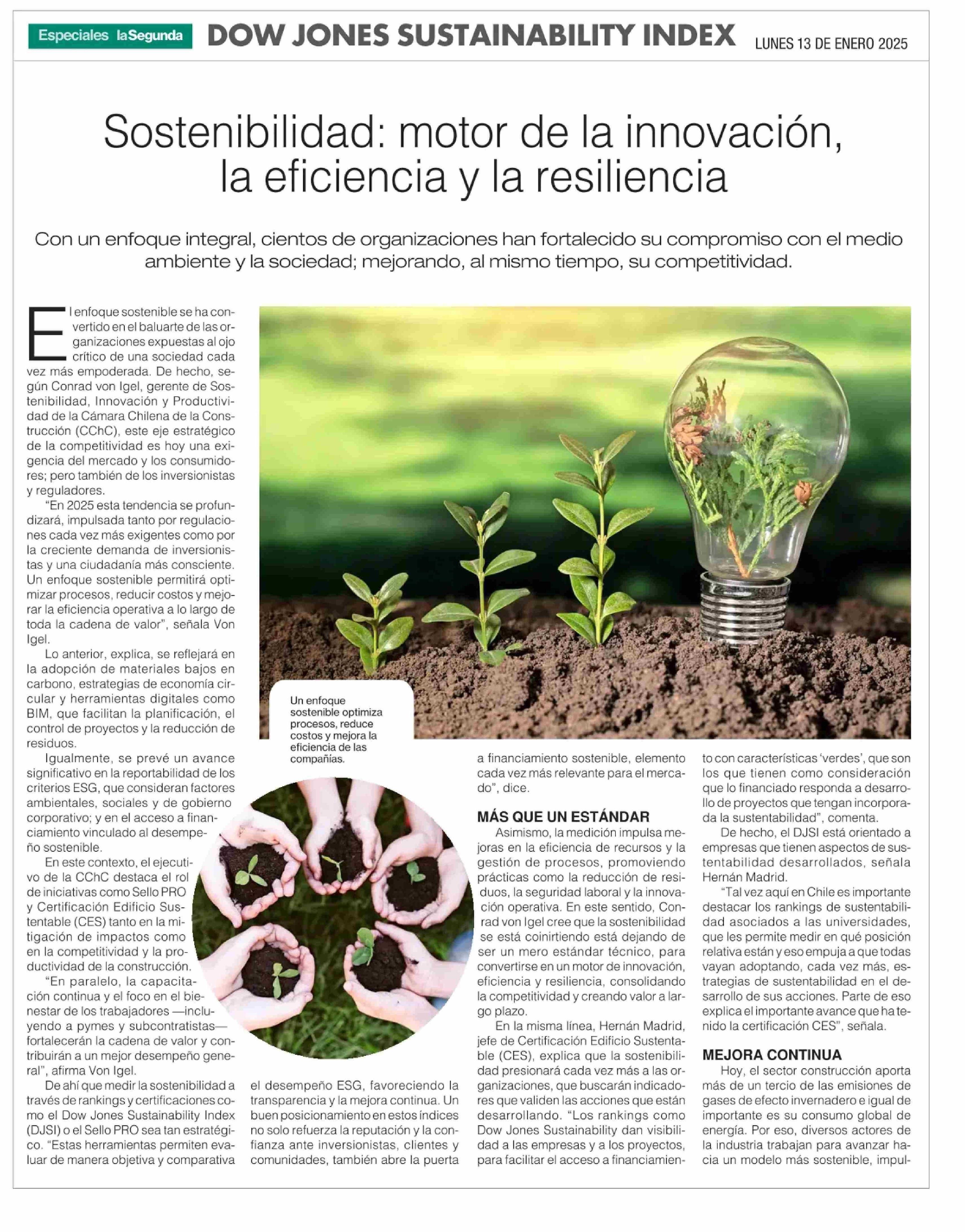sostenibilidad: motor de la innovación, la eficiencia y la resiliencia 13-01-2025 La Segunda  |