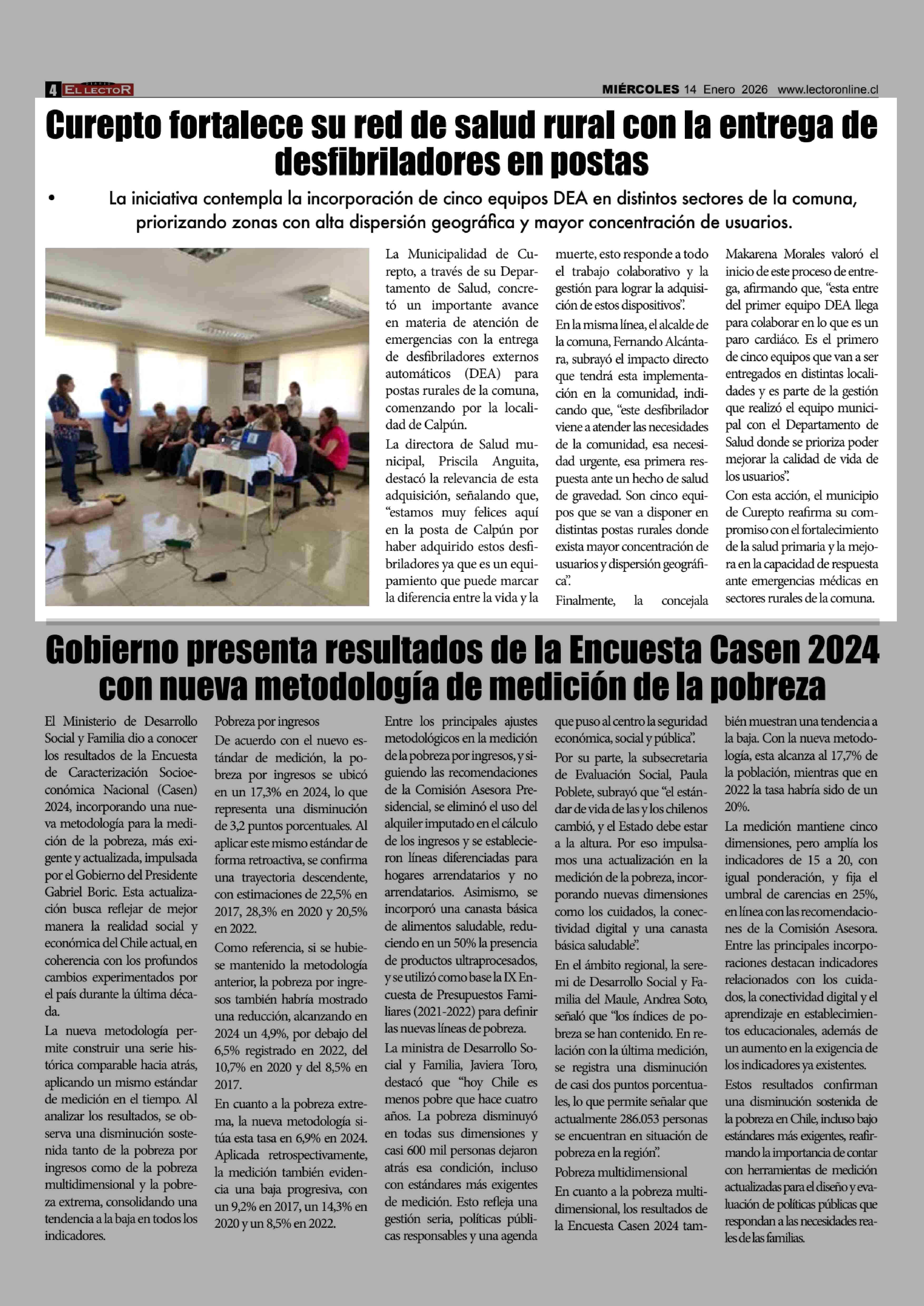 Curepto fortalece su red de salud rural con la entrega de desfibriladores en postas 14-01-2026 El Lector |