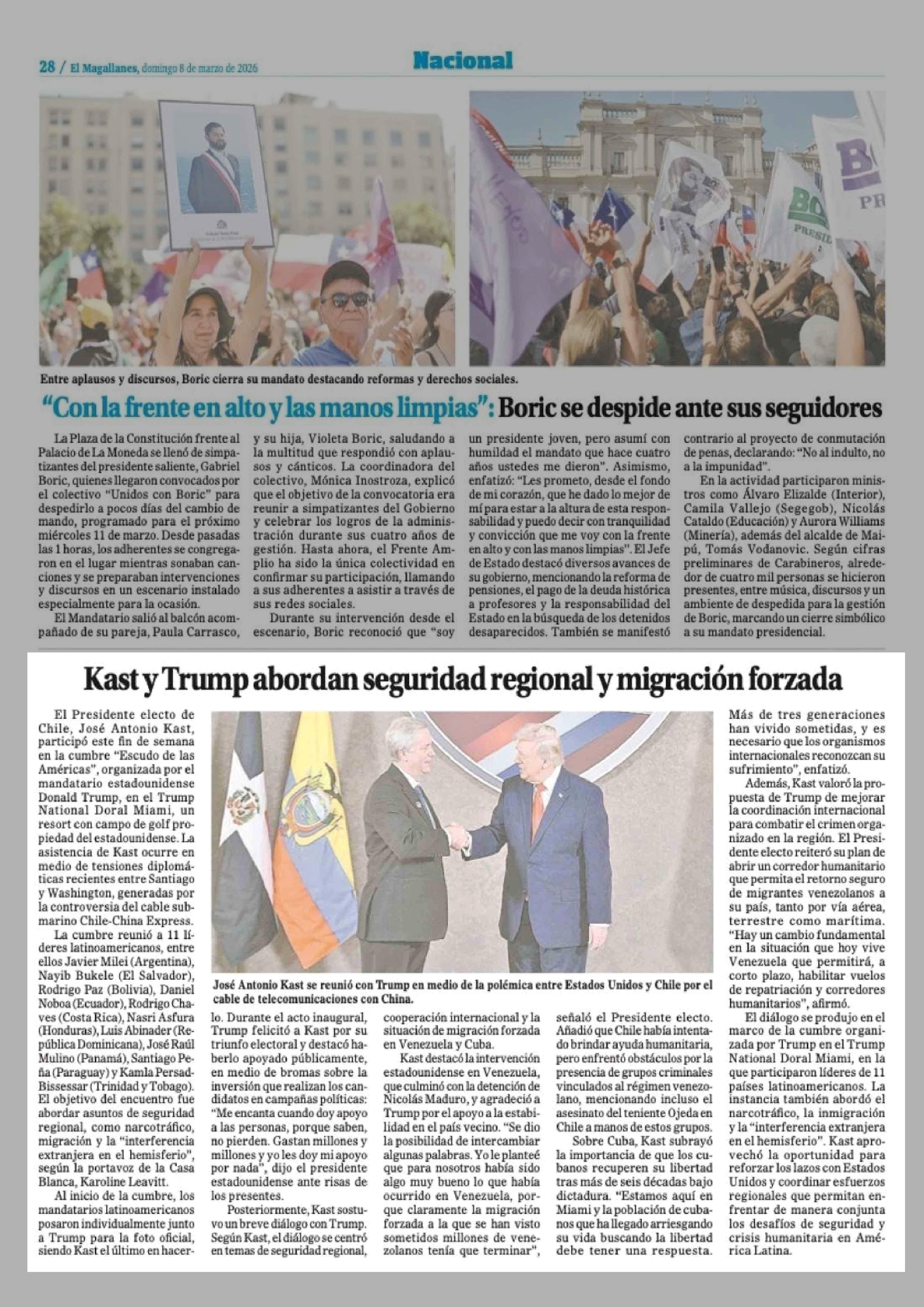 Kast y Trump abordan seguridad regional y migración forzada 08-03-2026 El Magallanes |
