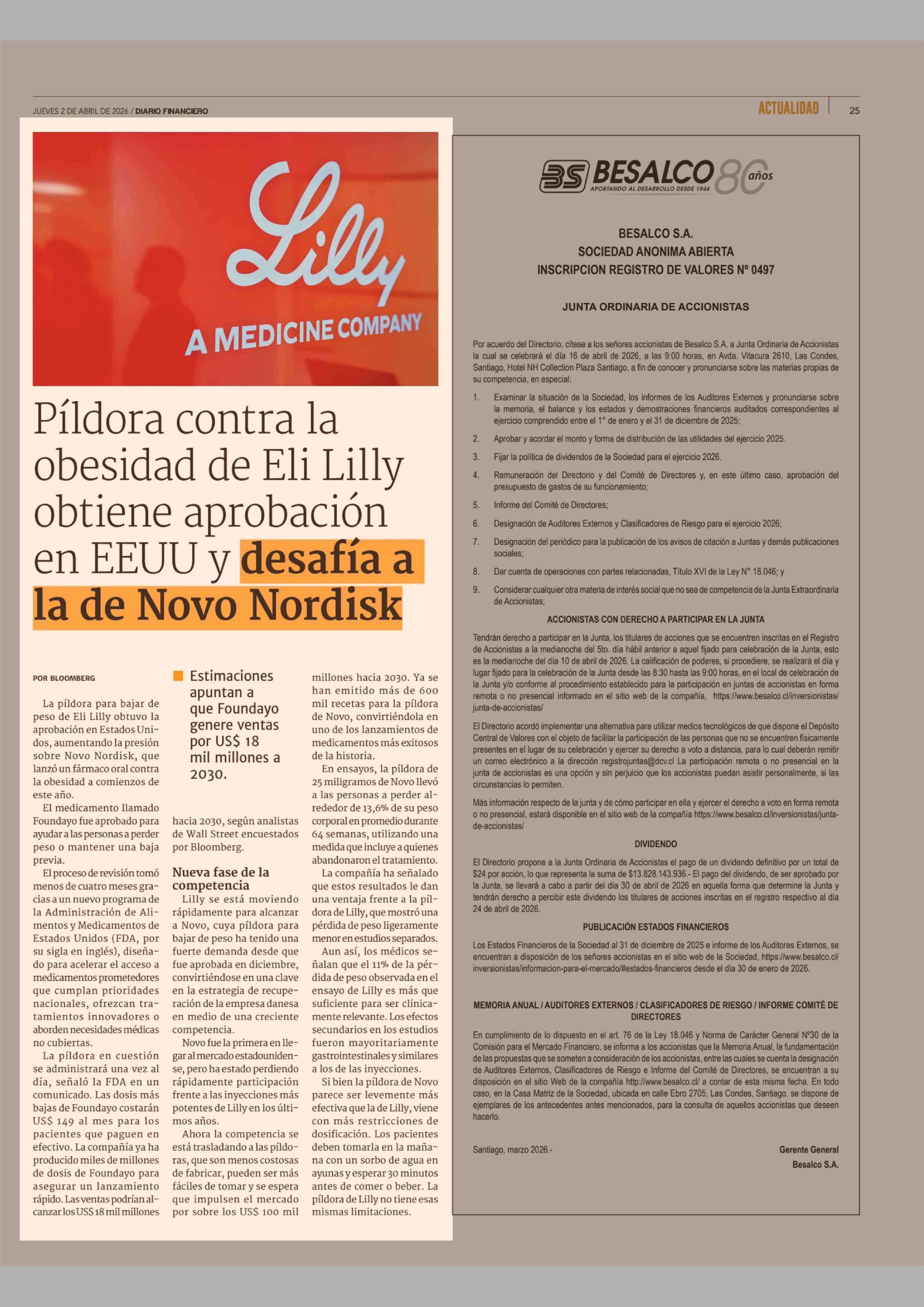 Fuente: Diario Financiero (Diario Financiero) Página(s): 25