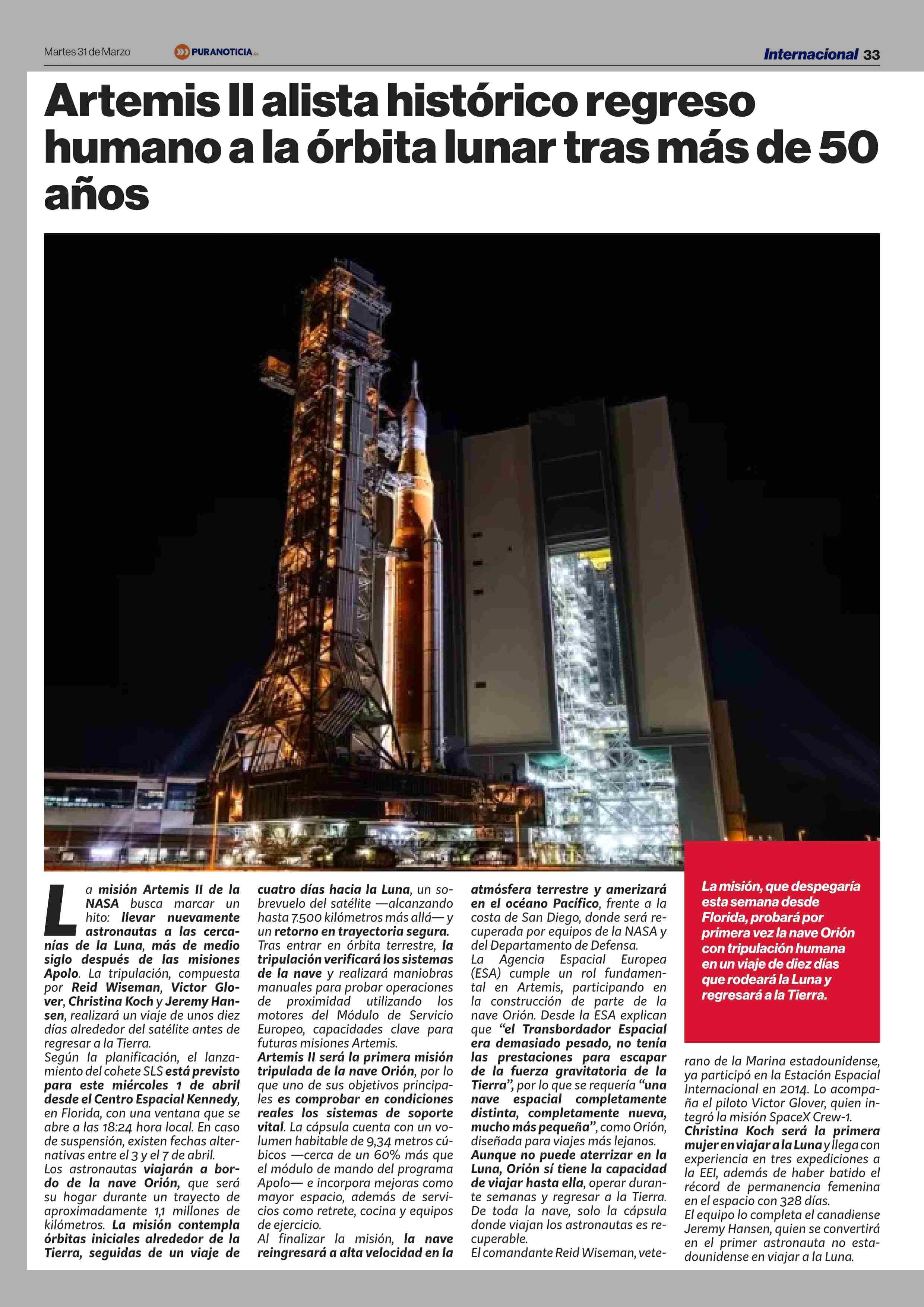 Título: Artemis ll alista histórico regreso humano a la órbita lunar tras más de 50 años