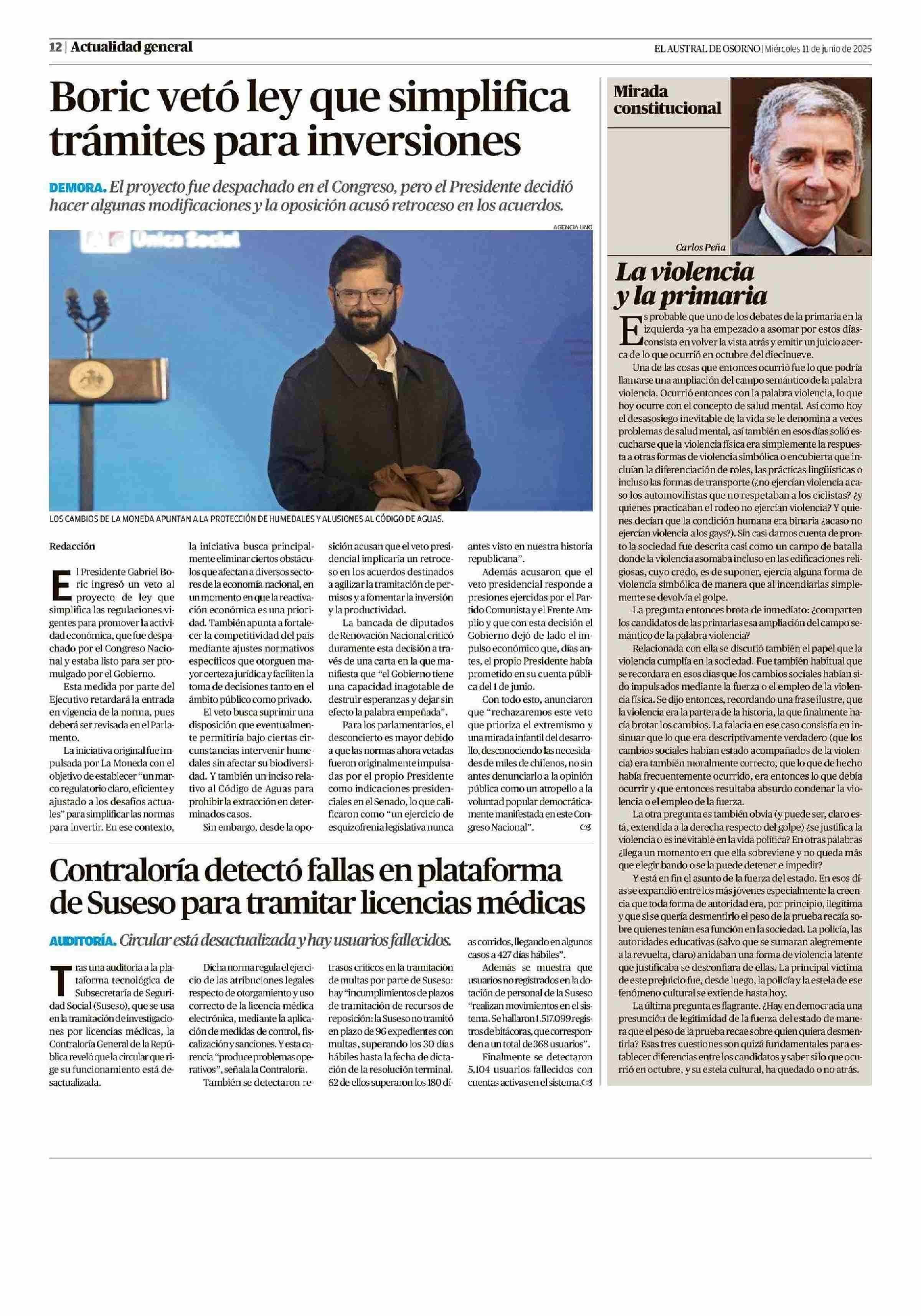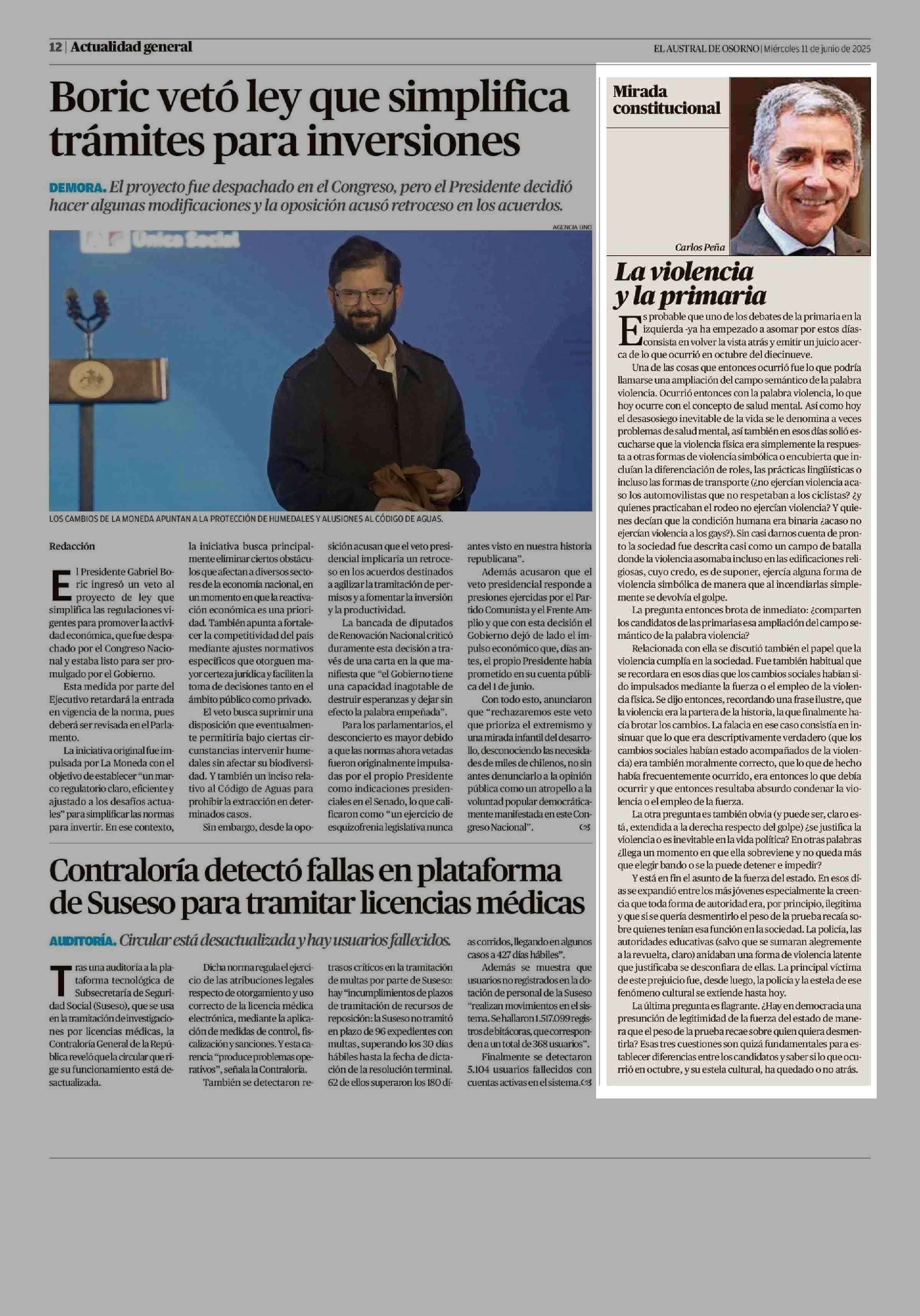 Columnas de Opinión: La violencia y la primaria 11-06-2025 El Austral de Osorno |