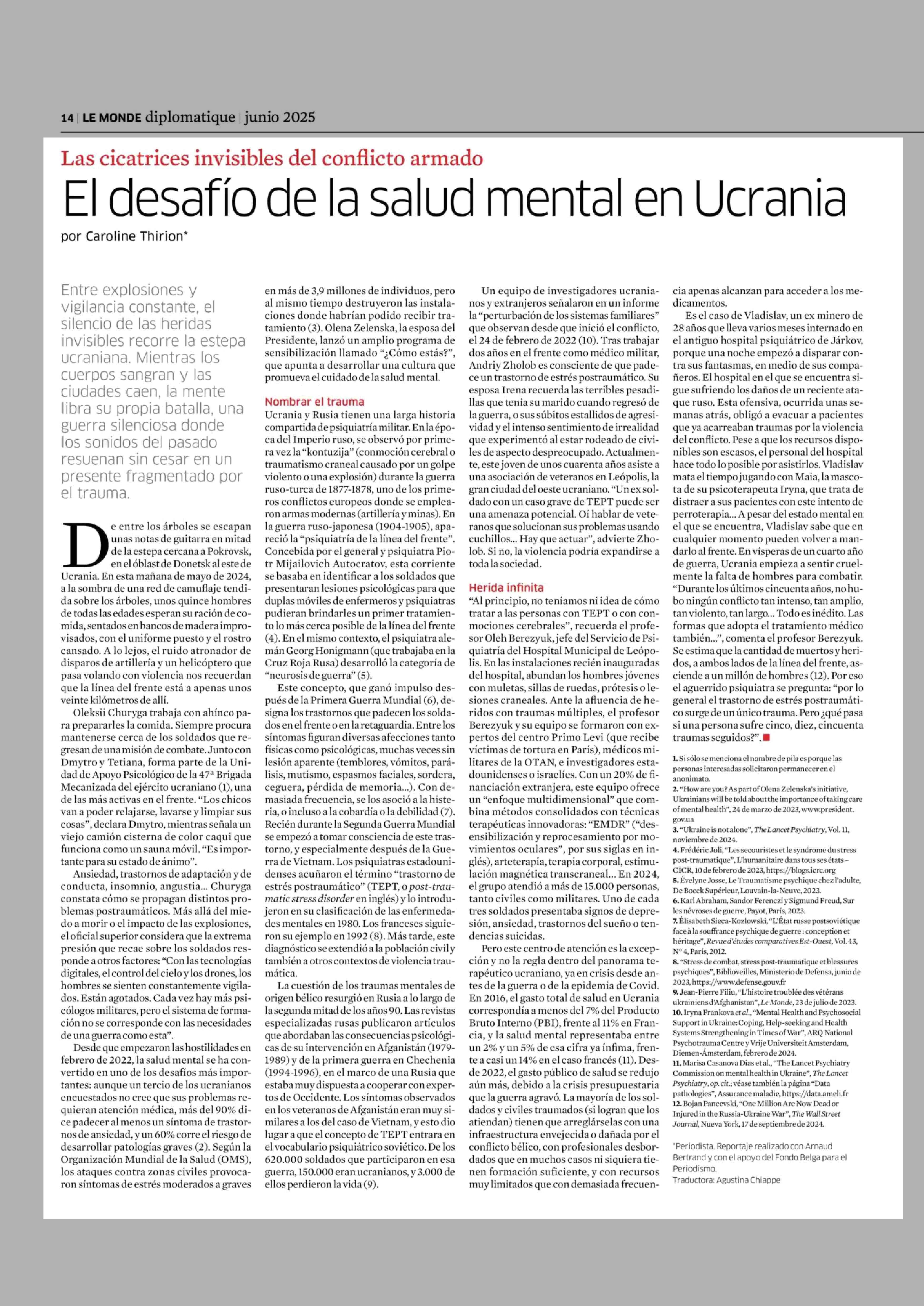 El desafío de la salud mental en Ucrania 03-06-2025 Le Monde Diplomatique |