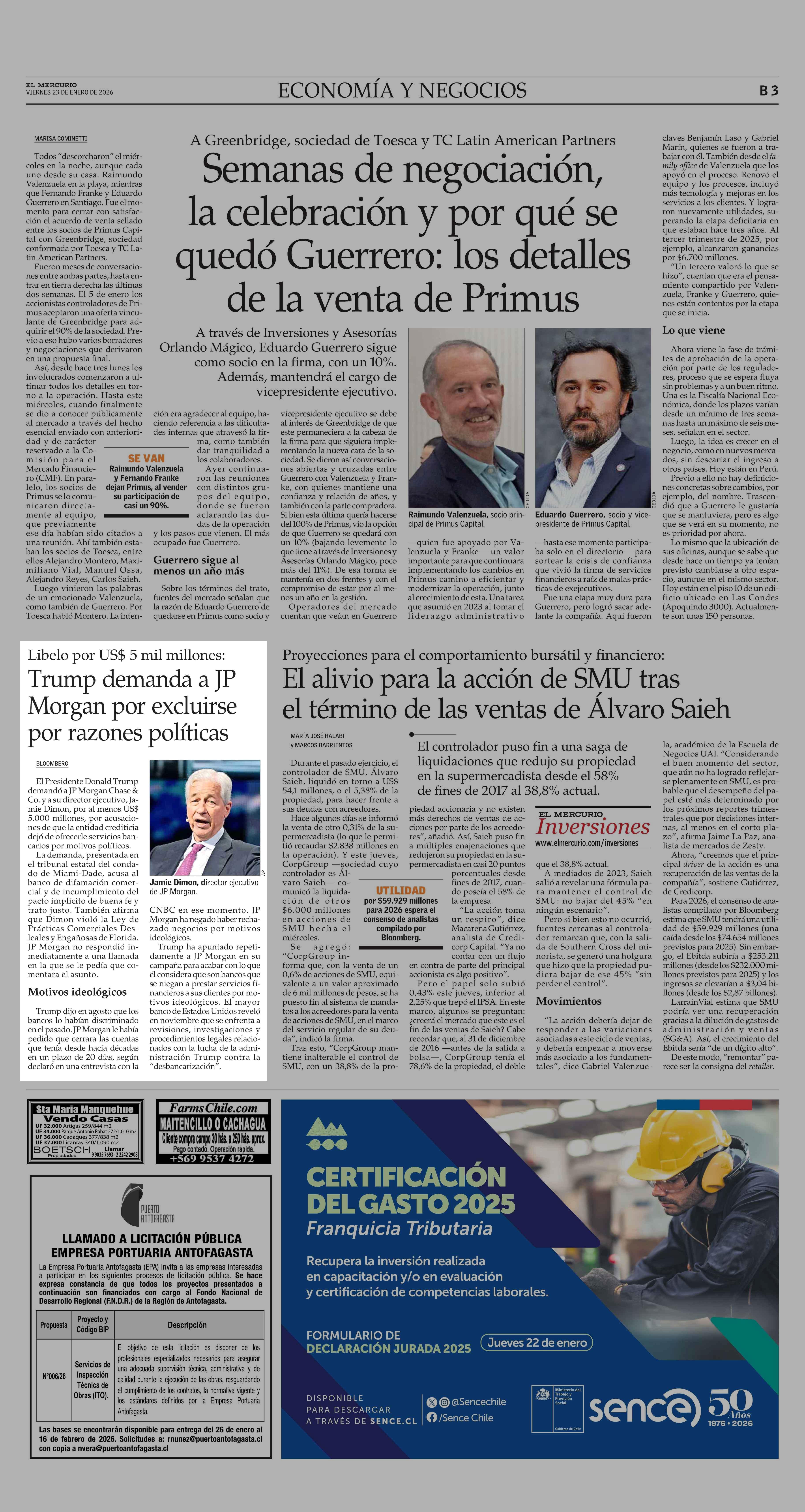 Trump demanda a JP Morgan por excluirse por razones políticas 23-01-2026 El Mercurio |