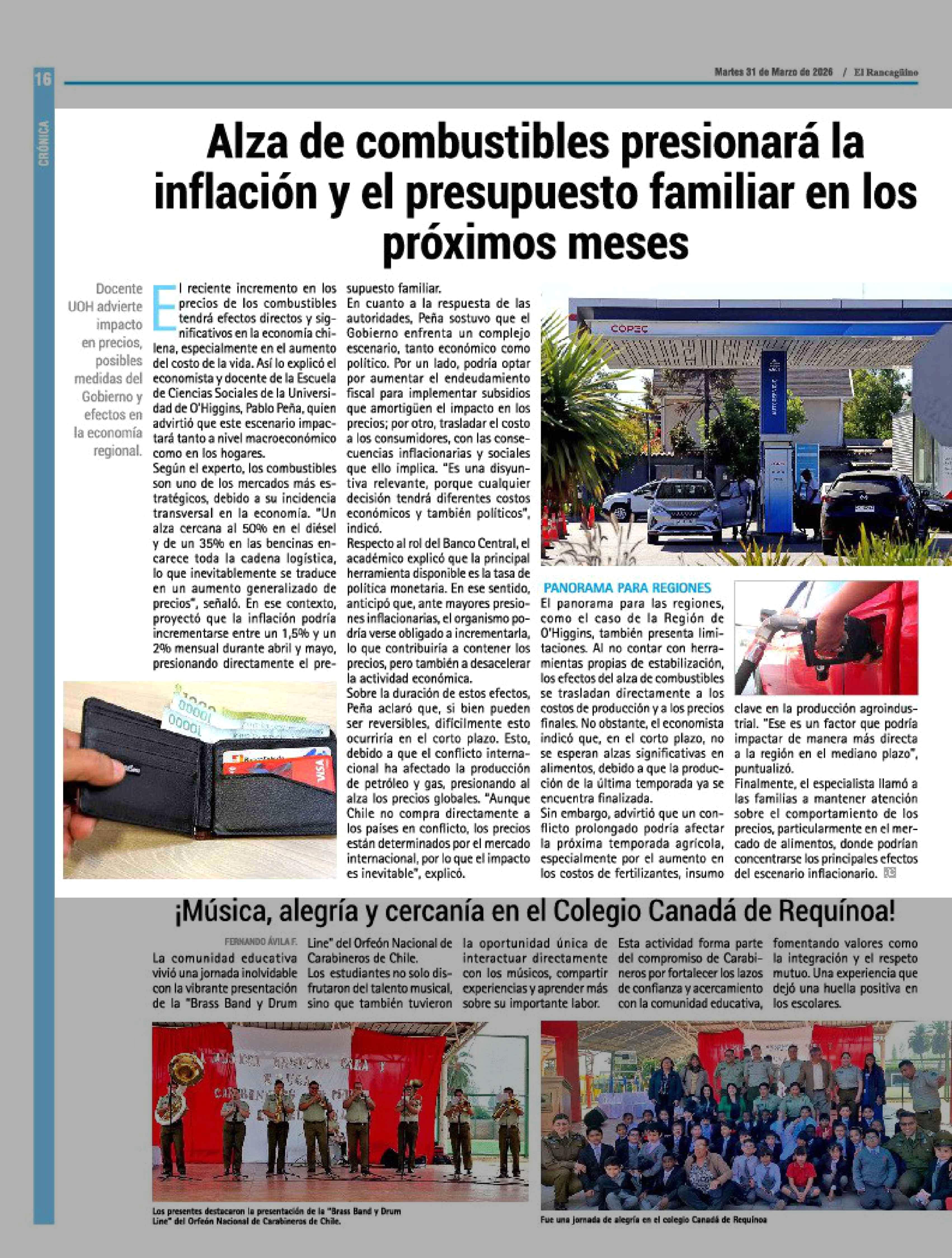 | Fecha: | 31-03-2026 | Sector: | Noticia general | Región: | Región del Libertador General Bernardo O'Higgins |
