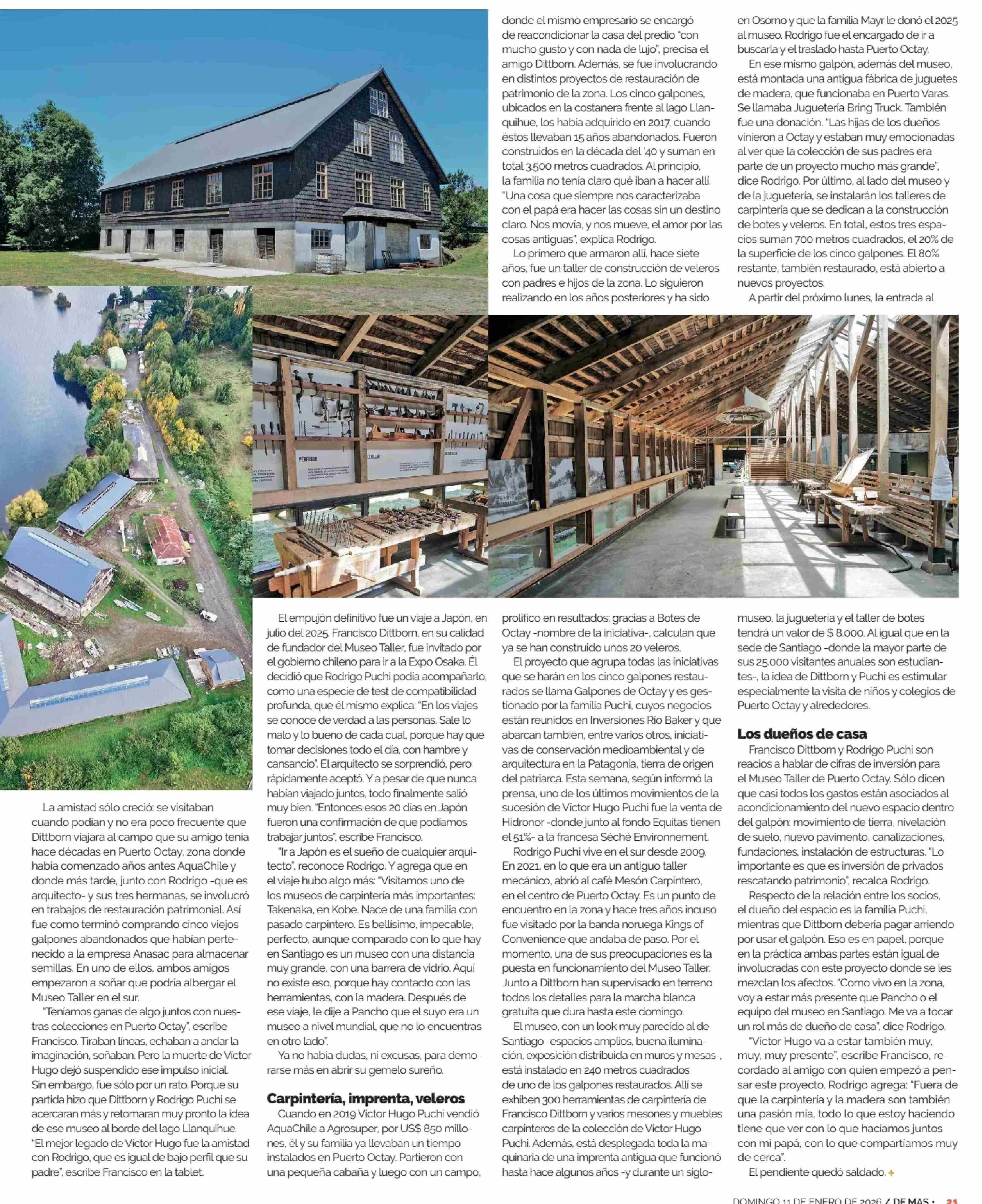 LA PRIMERA APUESTA JUNTOS DE RODRIGO PUCHI Y FRANCISCO DITTBORN: ABREN EL MUSEO TALLER EN PUERTO OCTAY 11-01-2026 Diario Financiero |