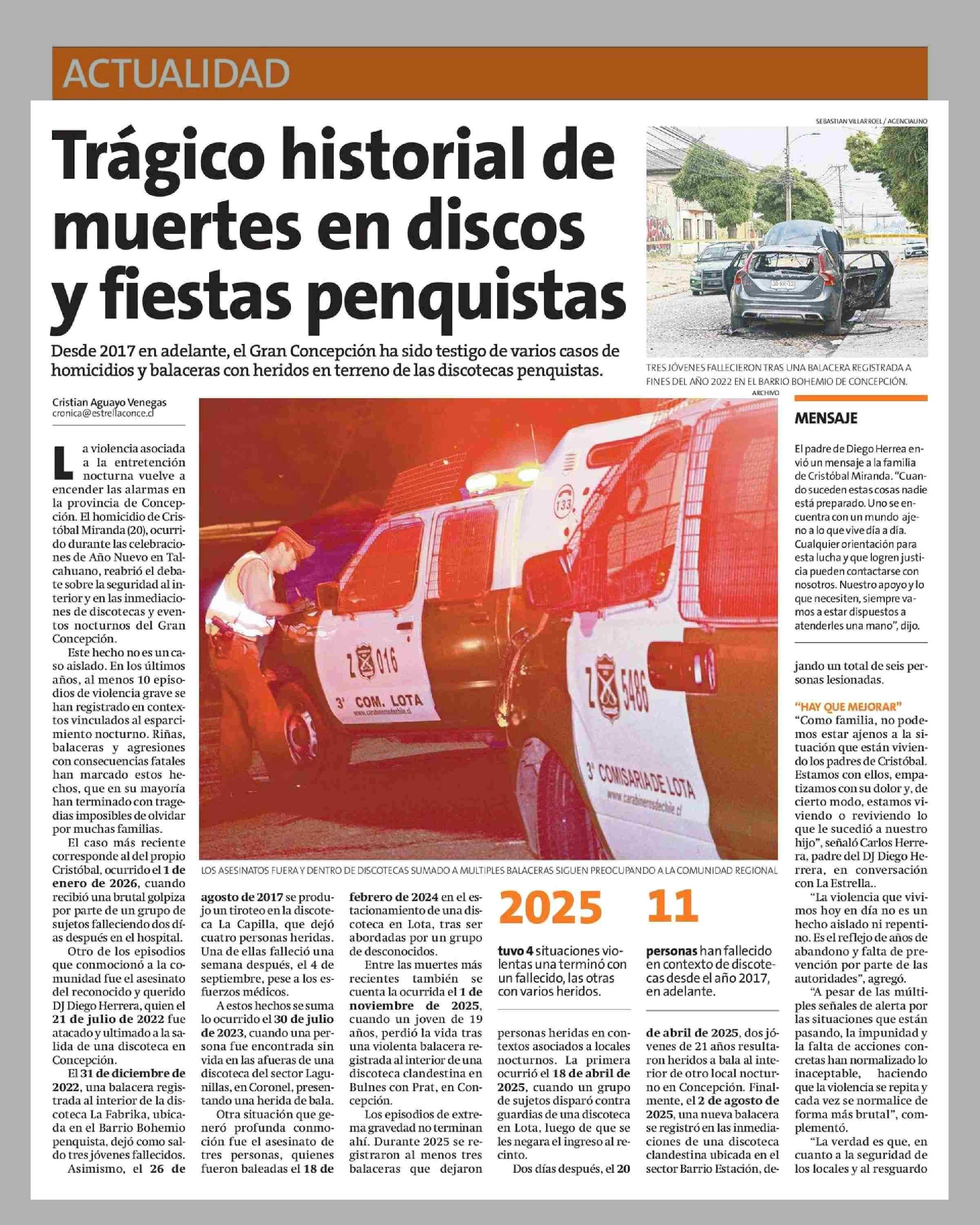 Trágico historial de muertes en discos y fiestas penquistas 10-01-2026 La Estrella de Concepción |