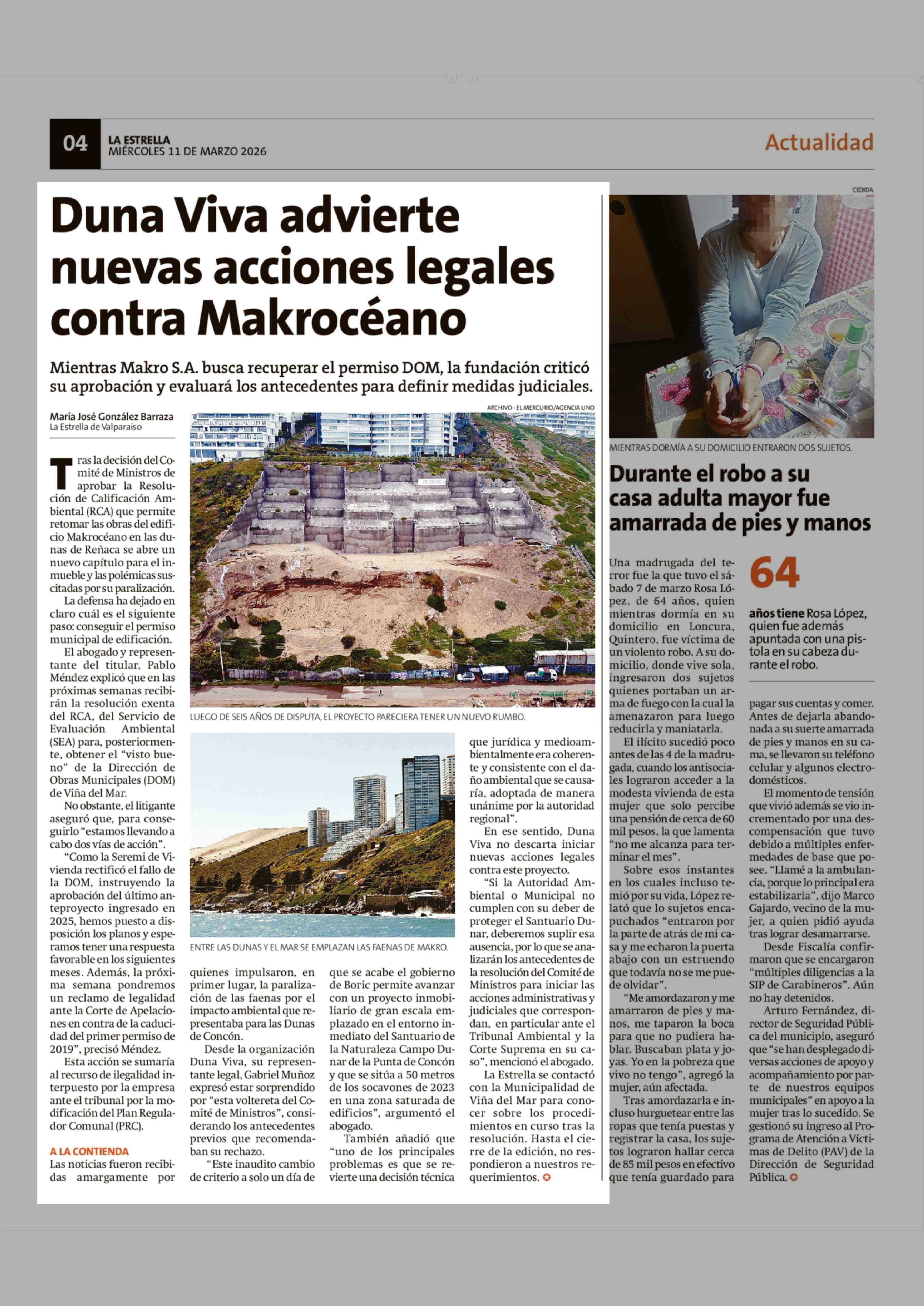 Duna Viva advierte nuevas acciones legales contra Makrocéano 11-03-2026 La Estrella de Valparaíso |