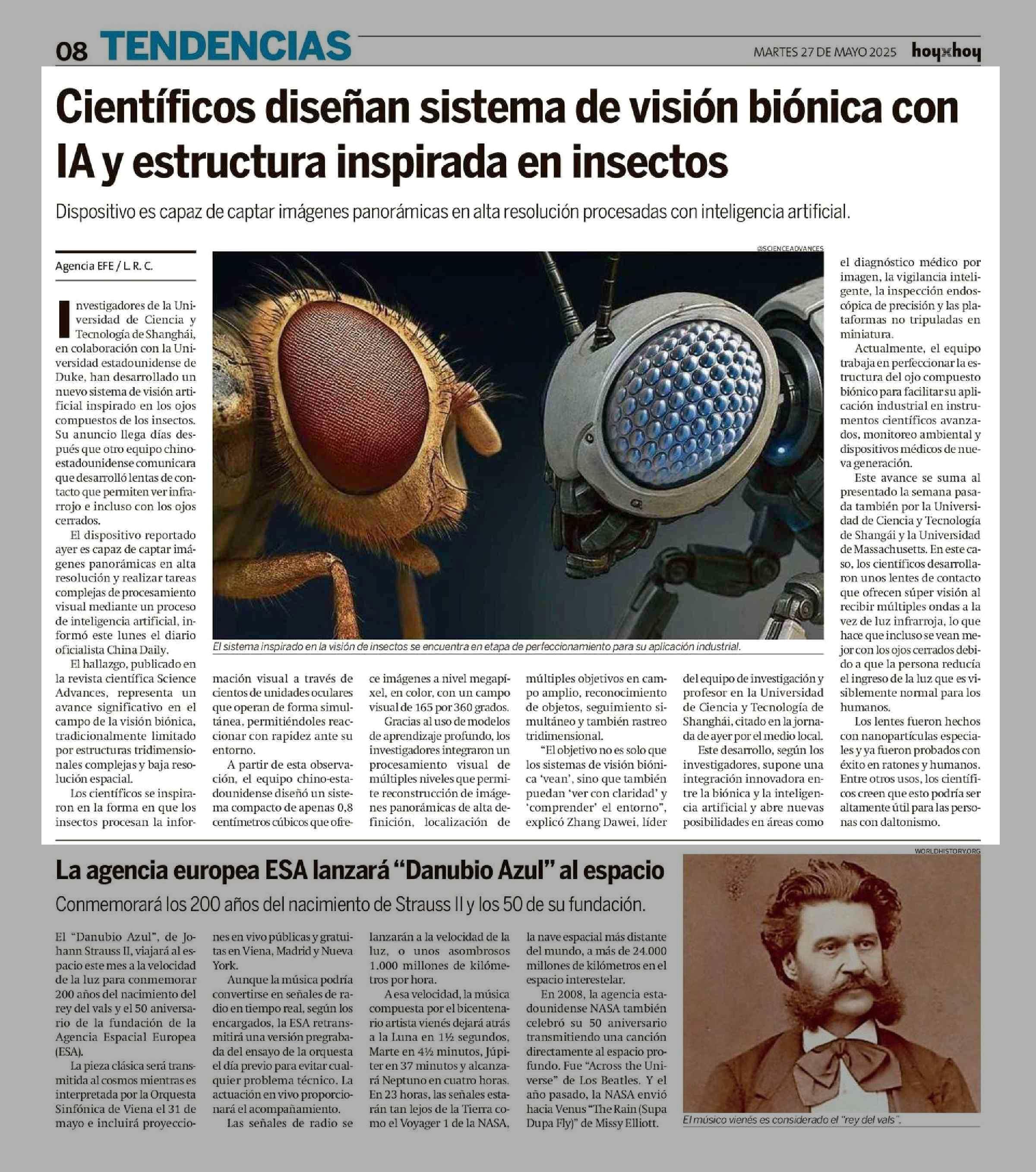 Título: Científicos diseñan sistema de visión biónica con IA y estructura inspirada en insectos