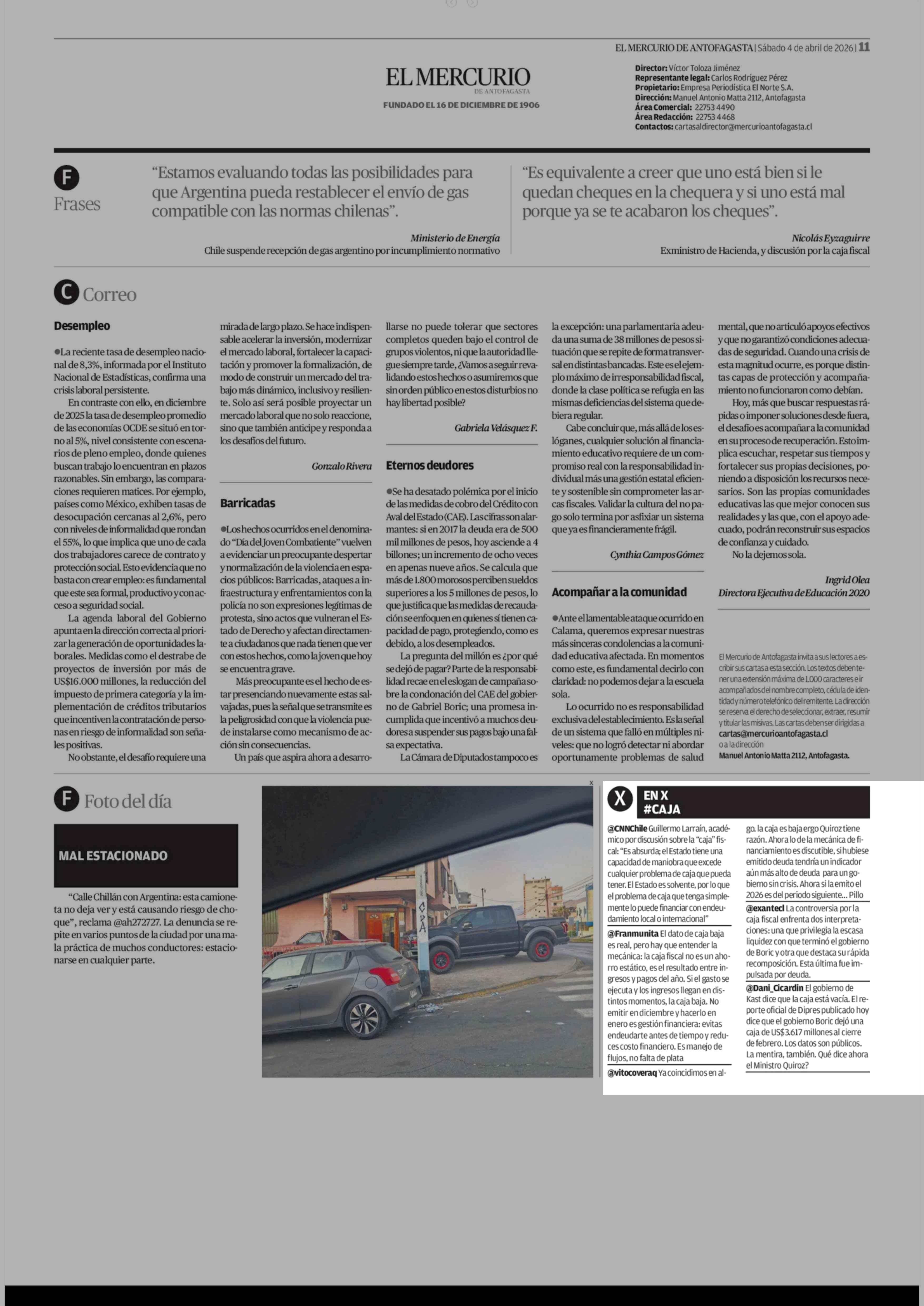 Fecha: 04-04-2026 Sector: Noticia general Región: Región de Antofagasta