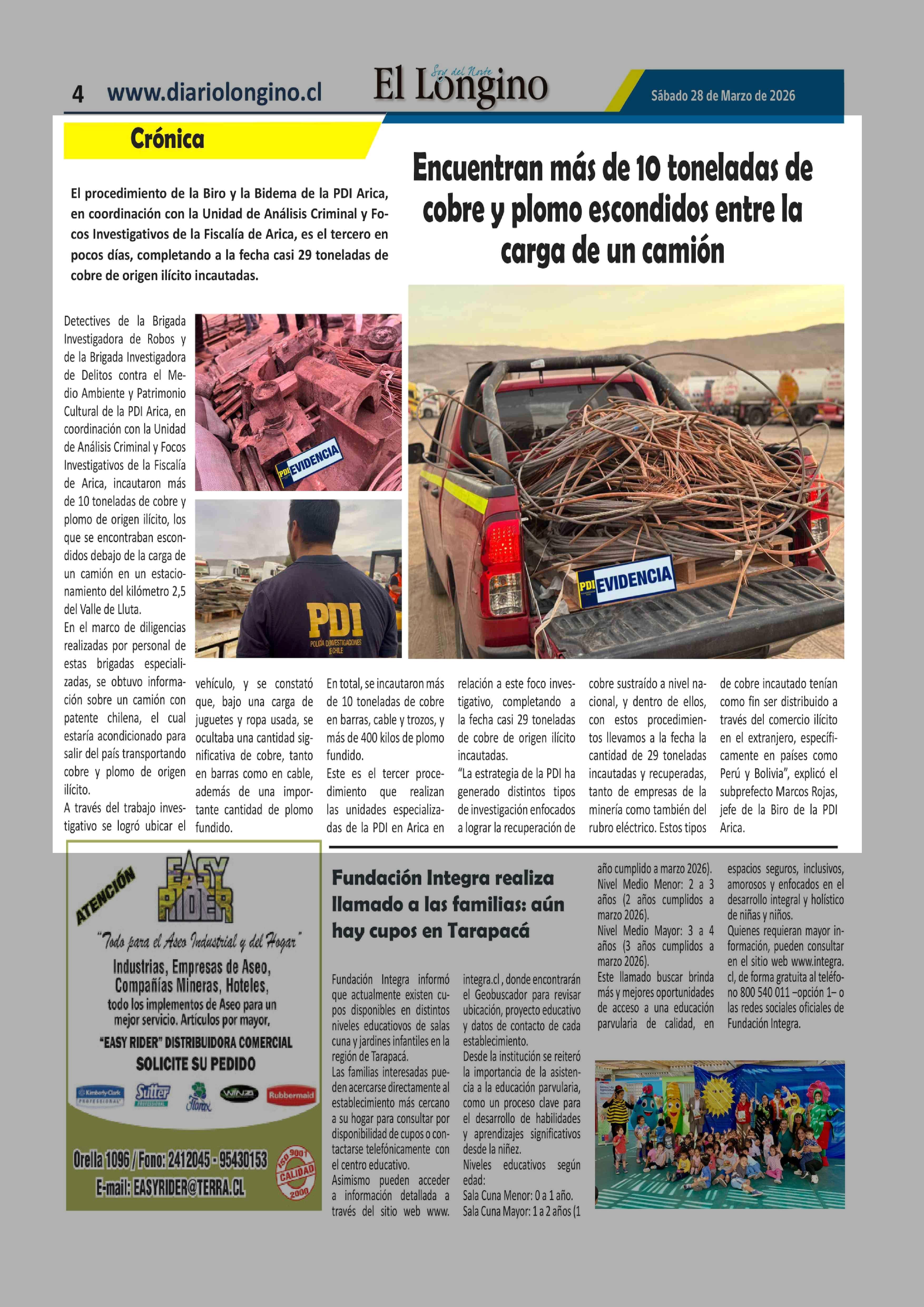 Fecha: 28-03-2026 Sector: Noticia general Región: Región de Tarapacá