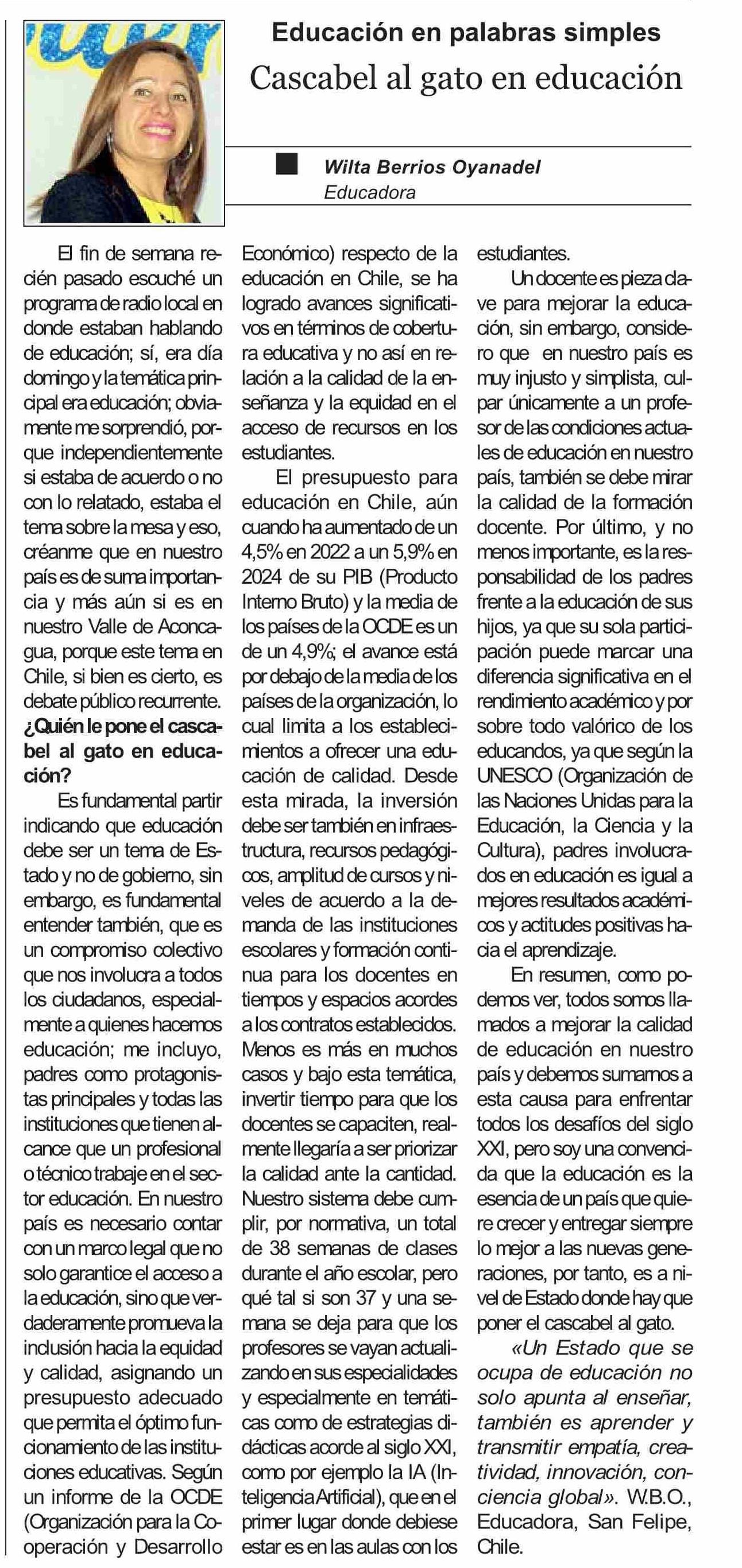 COLUMNAS DE OPINIÓN: Cascabel al gato en educación 28-01-2025 El Trabajo |