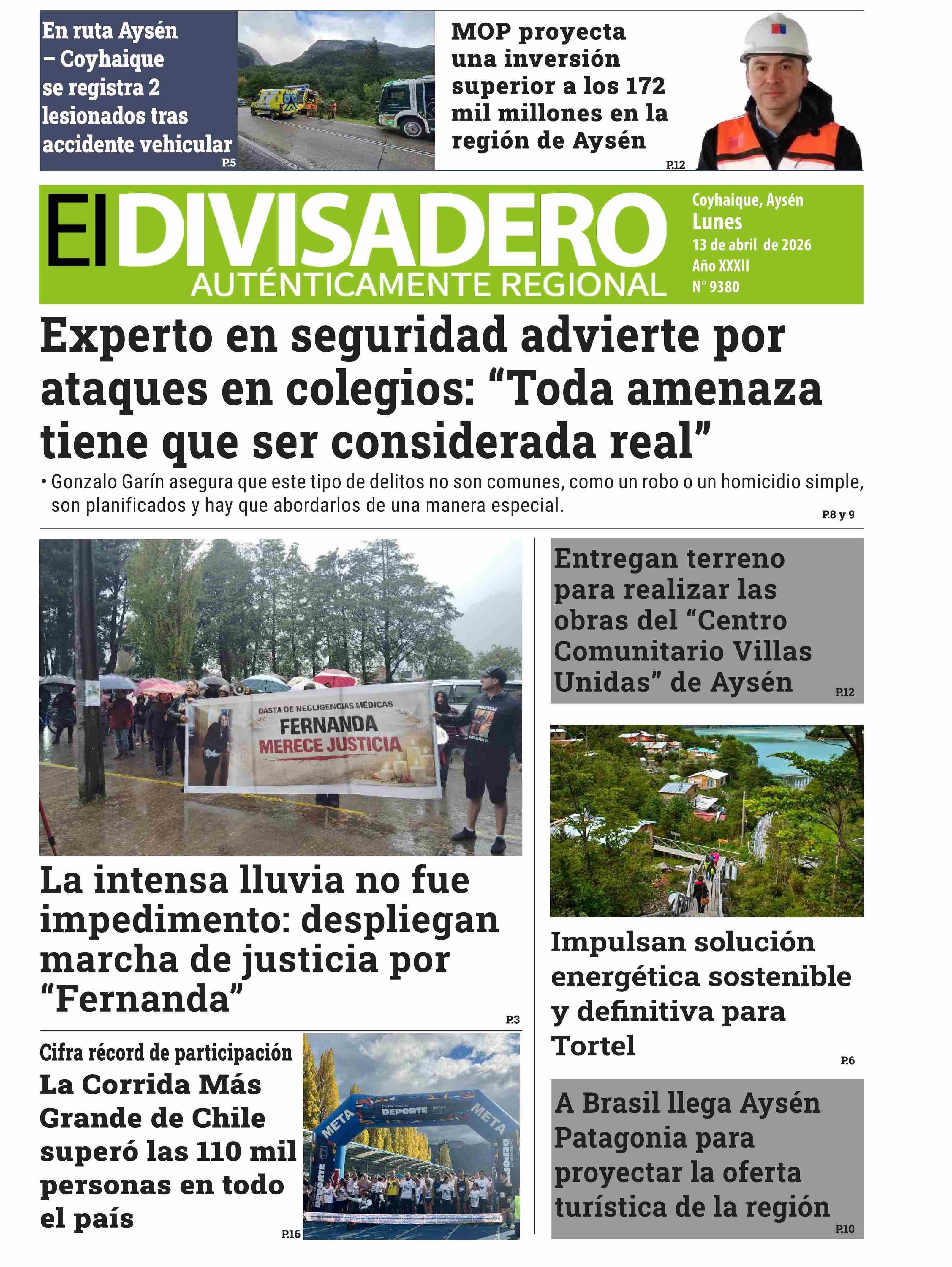 | Fecha: | 13-04-2026 | Sector: | Portada | Región: | Región Aysén del General Carlos Ibáñez del Campo |