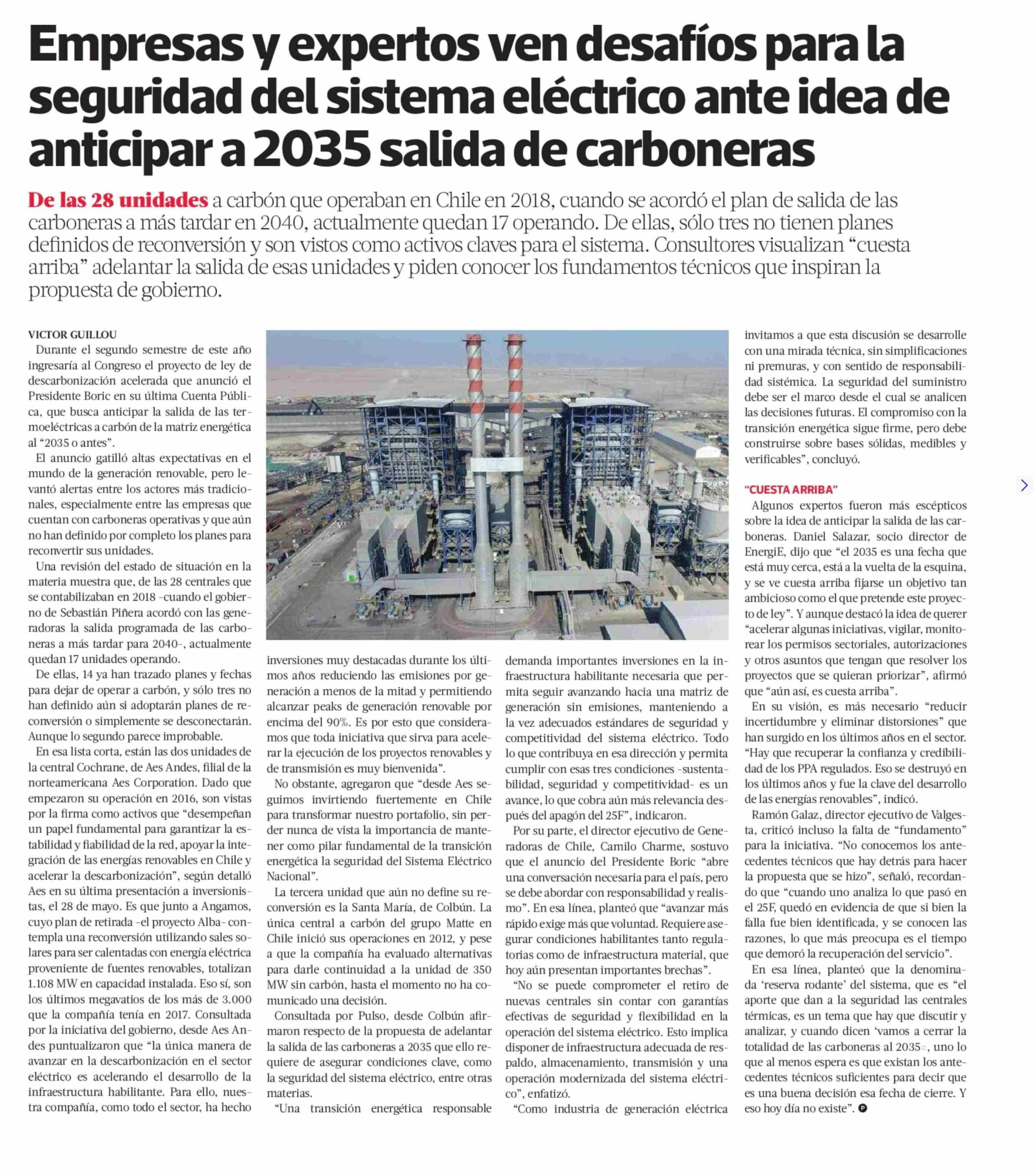 | Título: | Empresas y expertos ven desafíos para la seguridad del sistema eléctrico ante idea de anticipar a 2035 salida de carboneras |