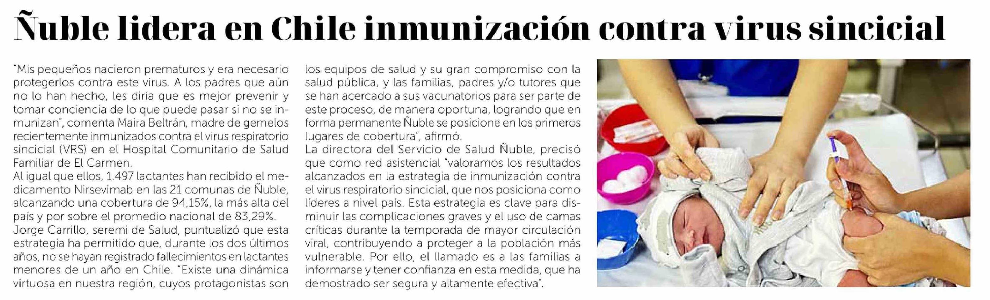 Título: Ñuble lidera en Chile inmunización contra virus sincicial