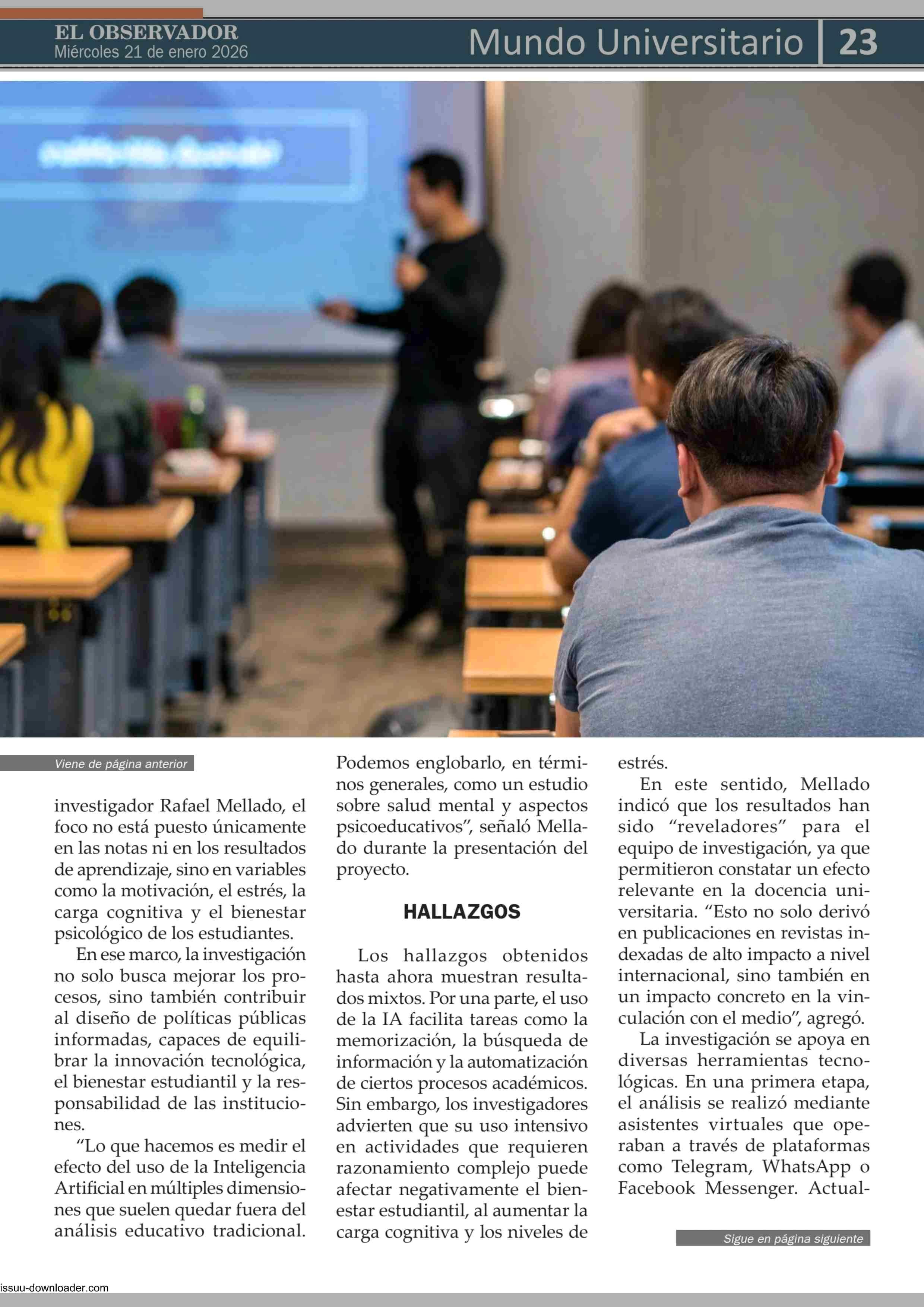 Investigación analiza efectos psicoeducativos de la IA en estudiantes universitarios