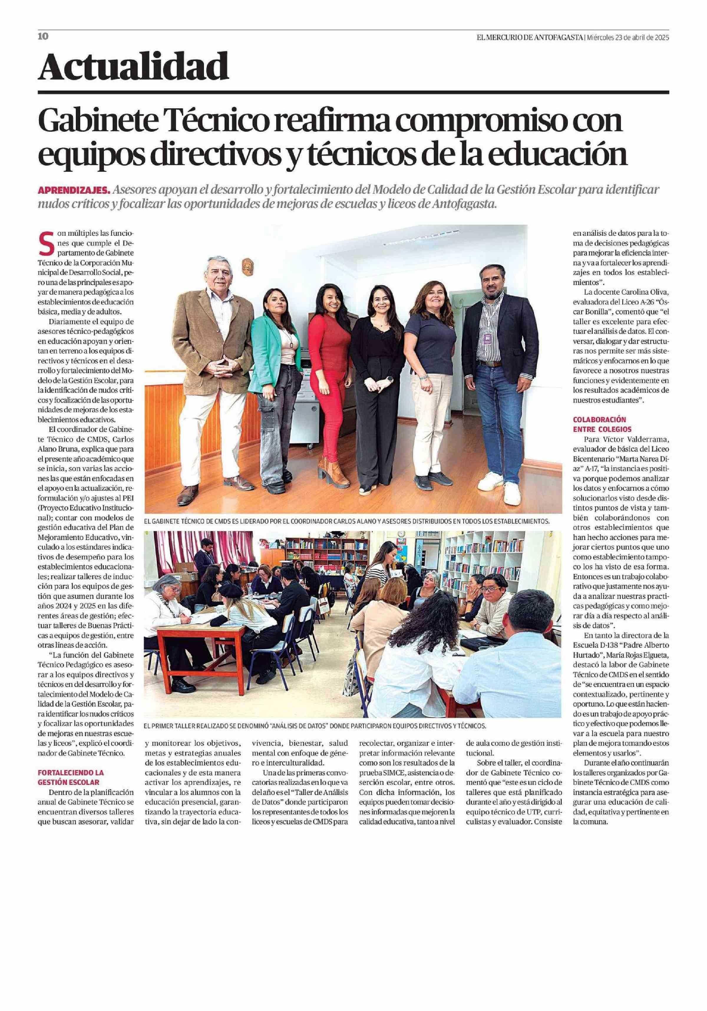 Gabinete Técnico reafirma compromiso con equipos directivos y técnicos de la educación 23-04-2025 El Mercurio de Antofagasta |