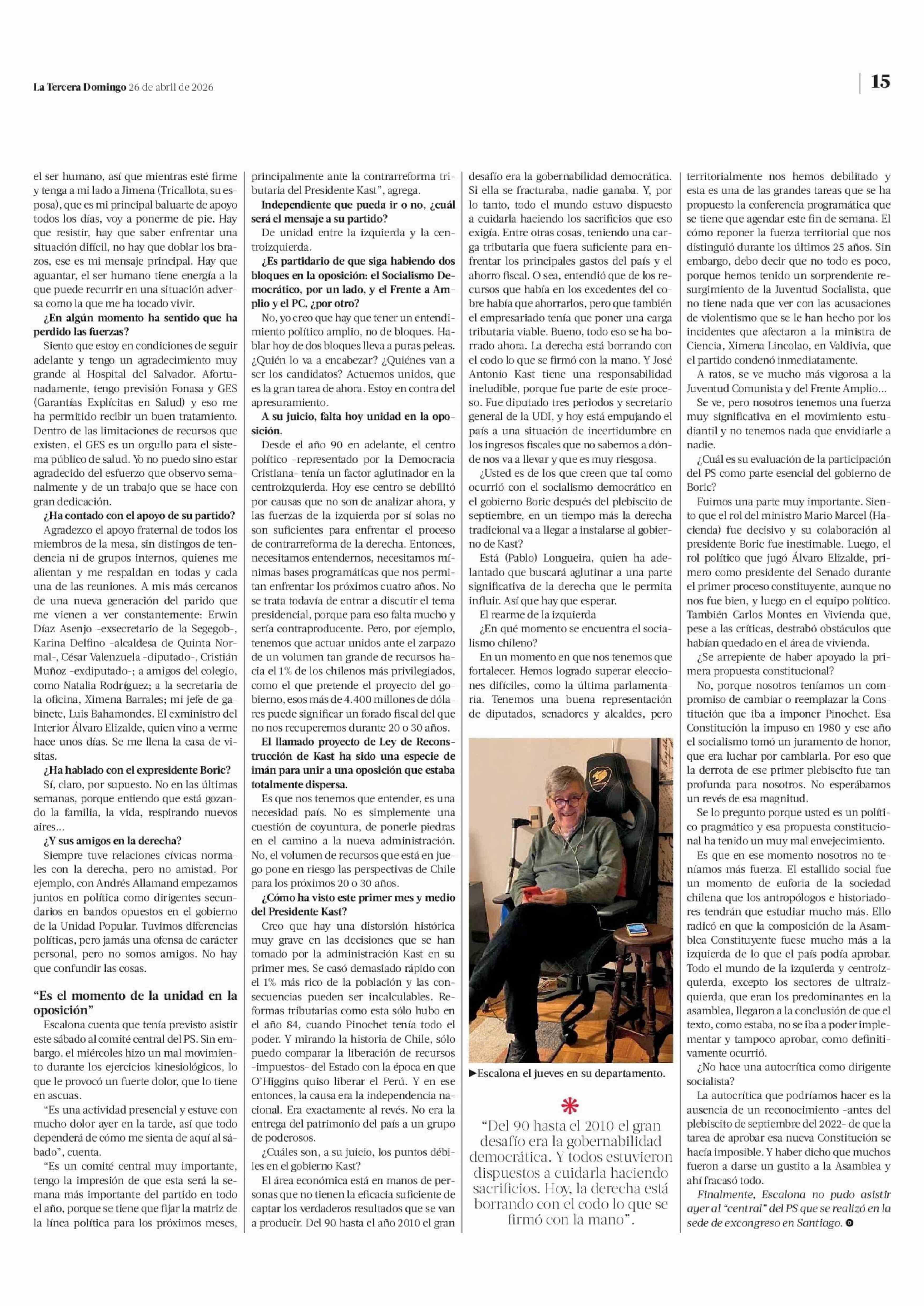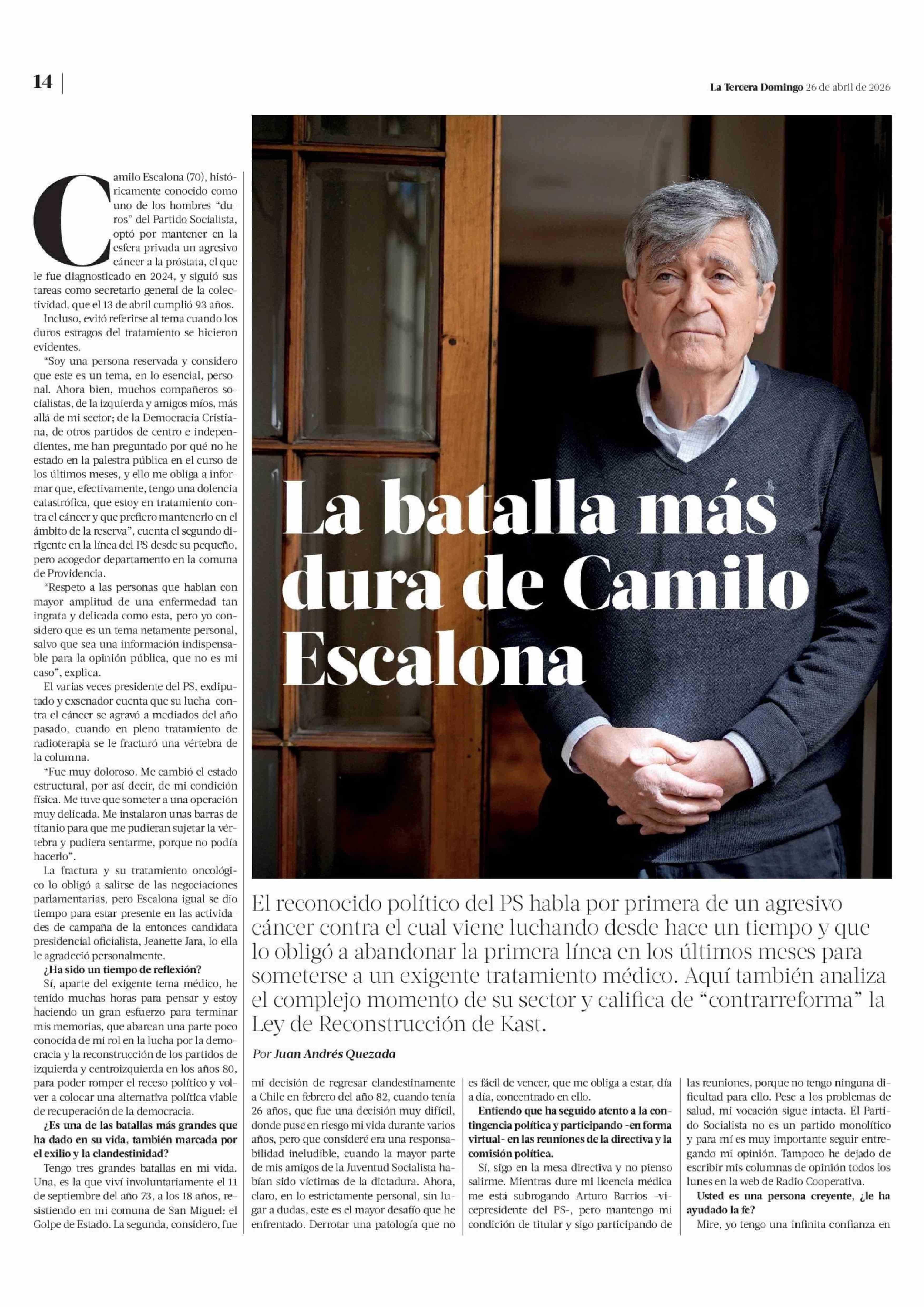 La batalla más dura de Camilo Escalona 26-04-2026 La Tercera |