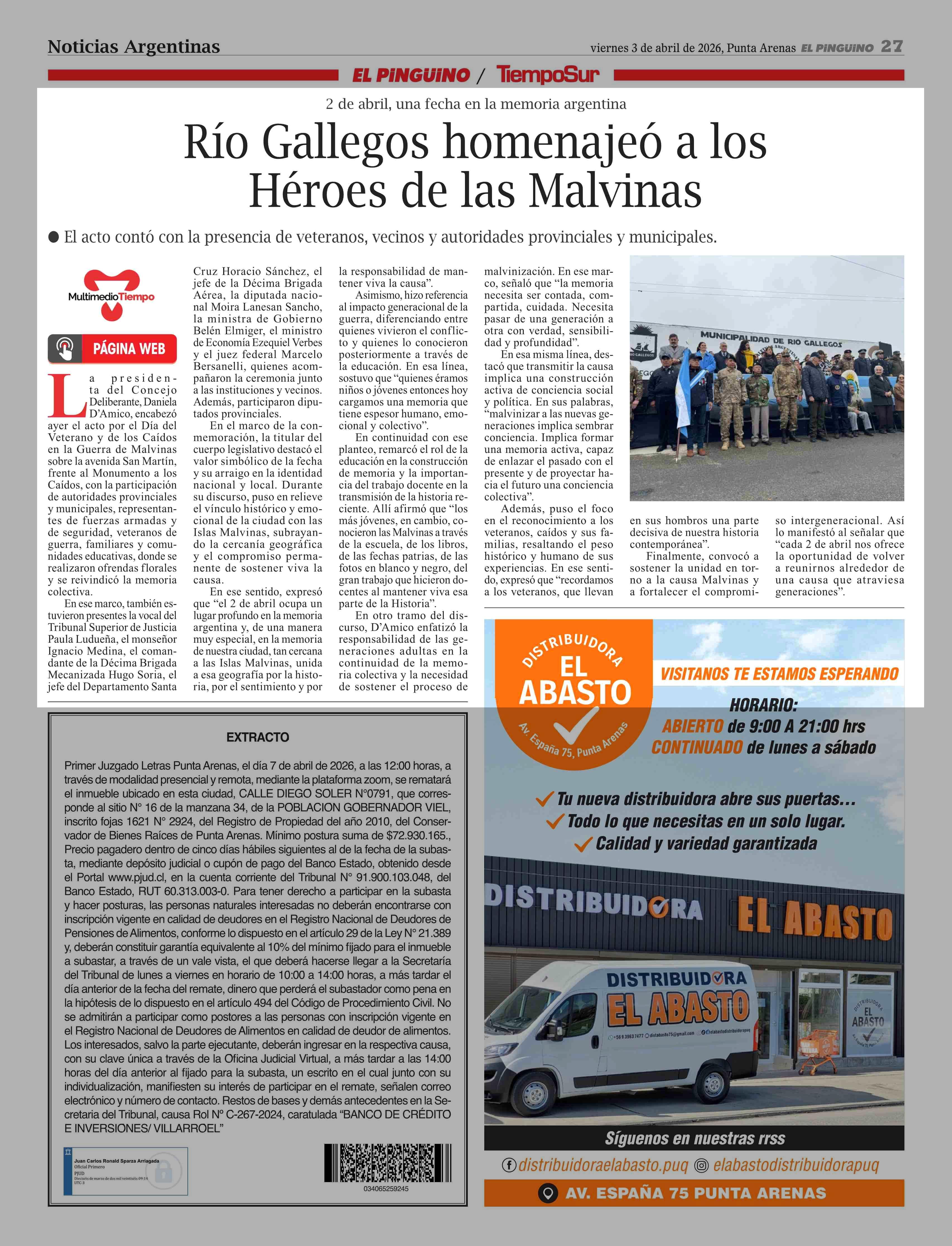 | Fecha: | 03-04-2026 | Sector: | Noticia general | Región: | Región de Magallanes y de la Antártica Chilena |