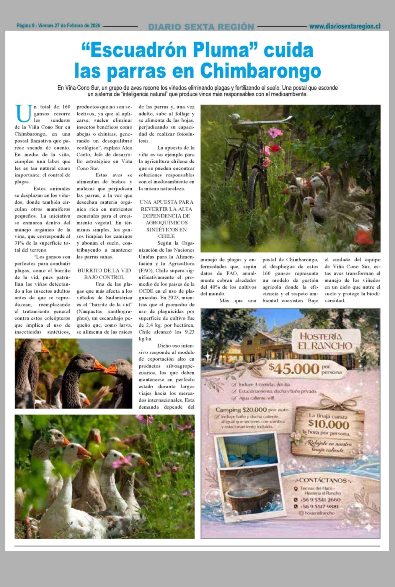 "Escuadrón Pluma" cuida las parras en Chimbarongo 27-02-2026 Diario VI Región |