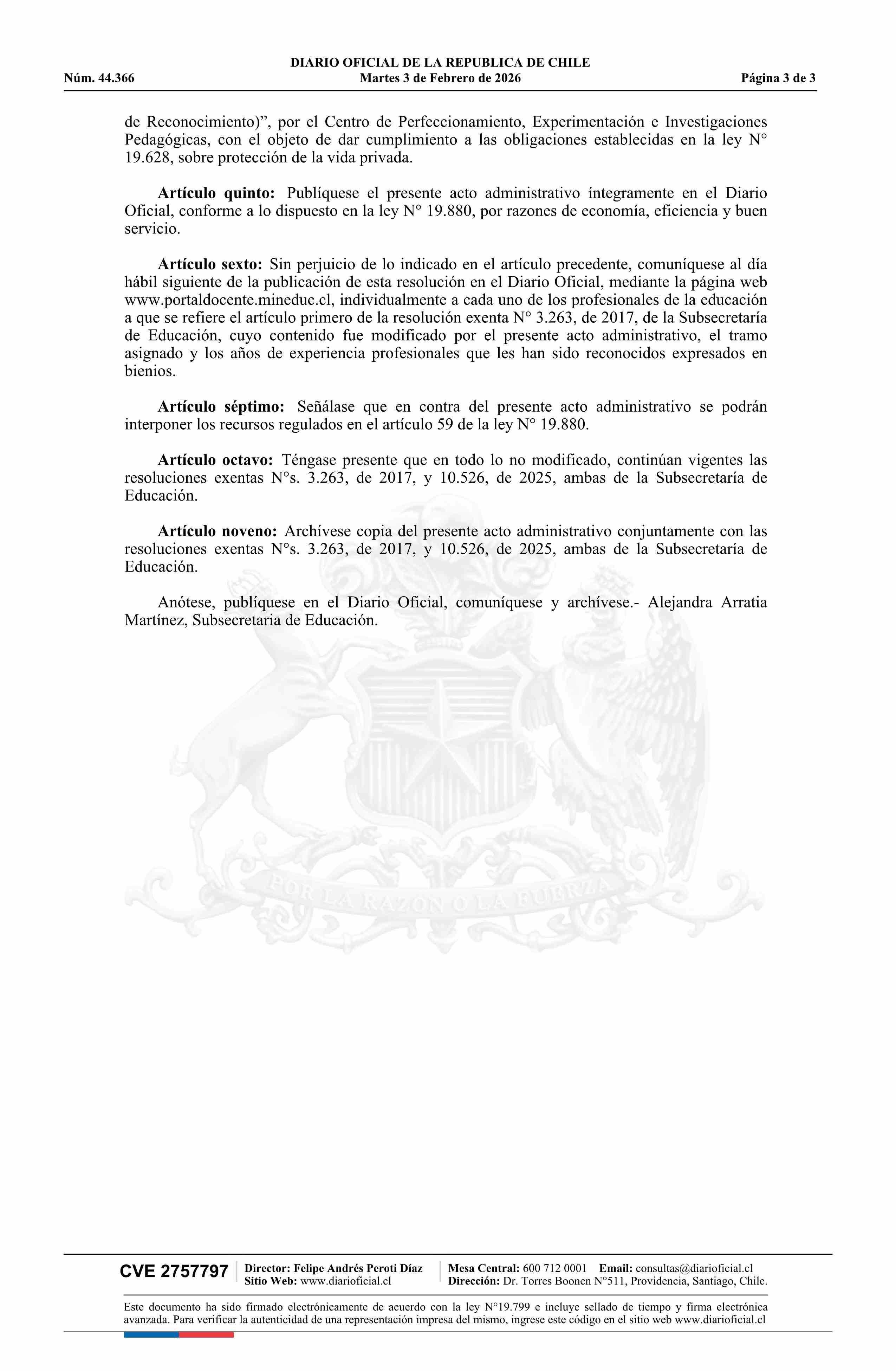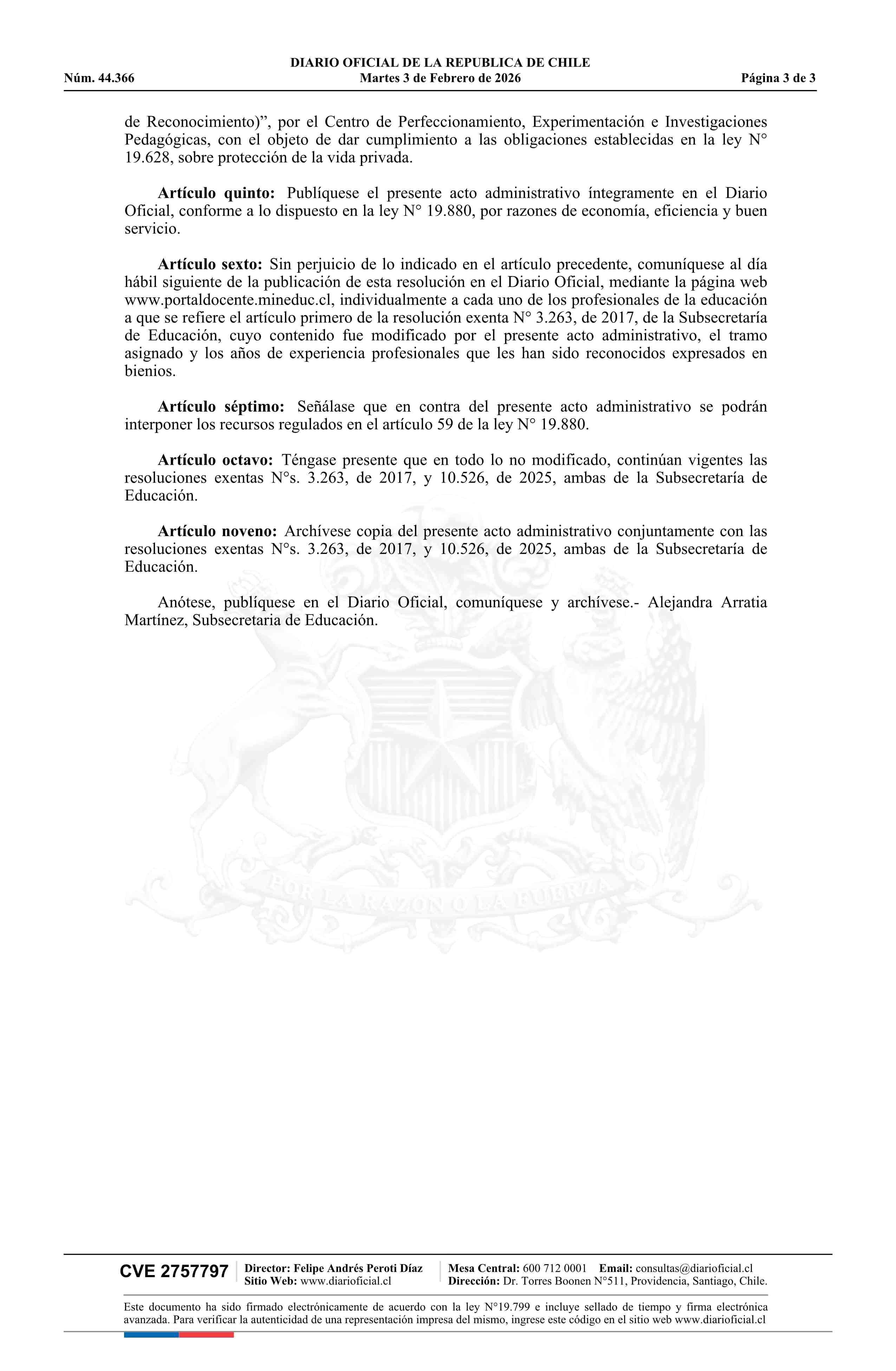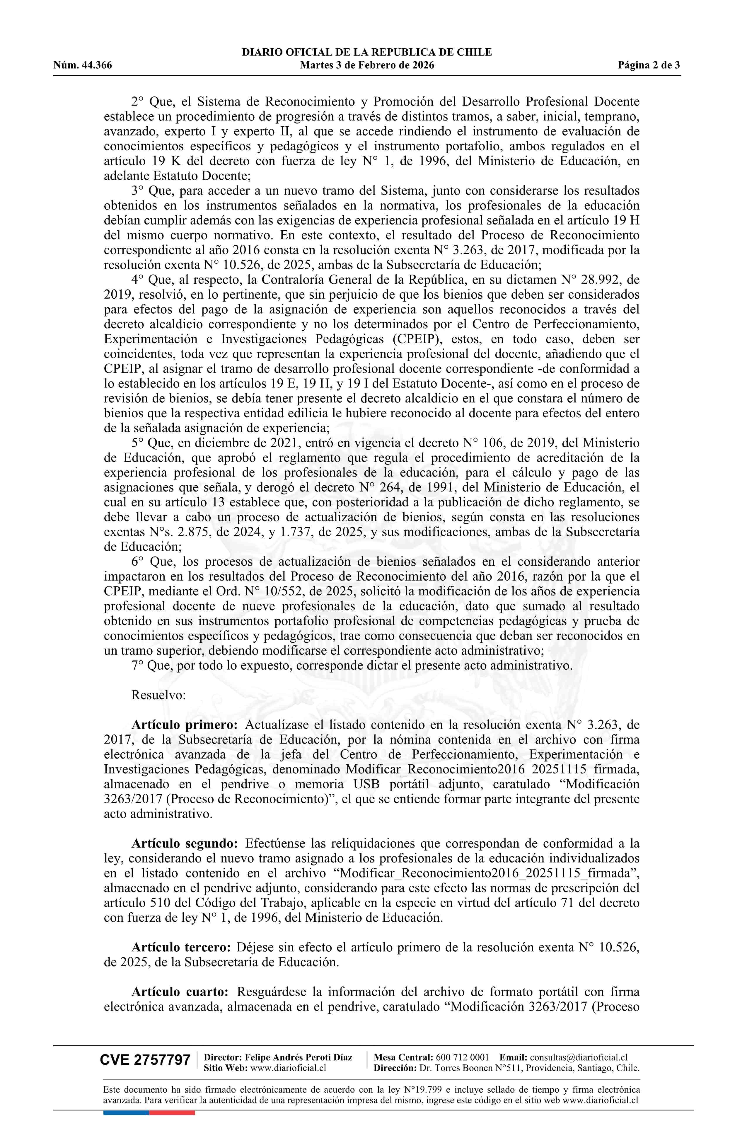 | Fuente: | Diario Oficial Edición Electrónica (Diario Oficial de Chile - 2 Normas Particulares) | Página(s): | 1-3 |