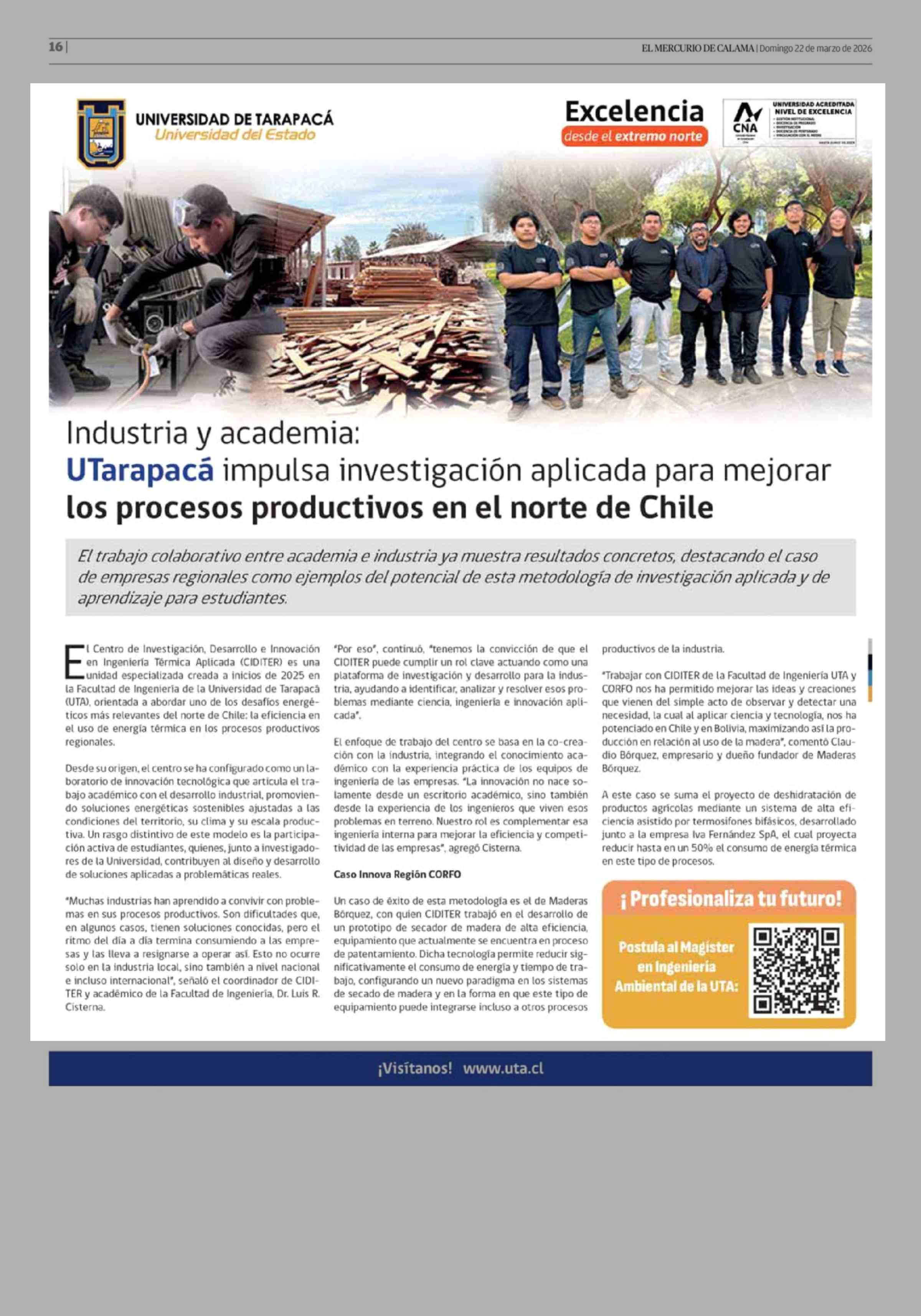 Título: Industria y academia: UTarapacá impulsa investigación aplicada para mejorar los procesos productivos en el norte de Chile