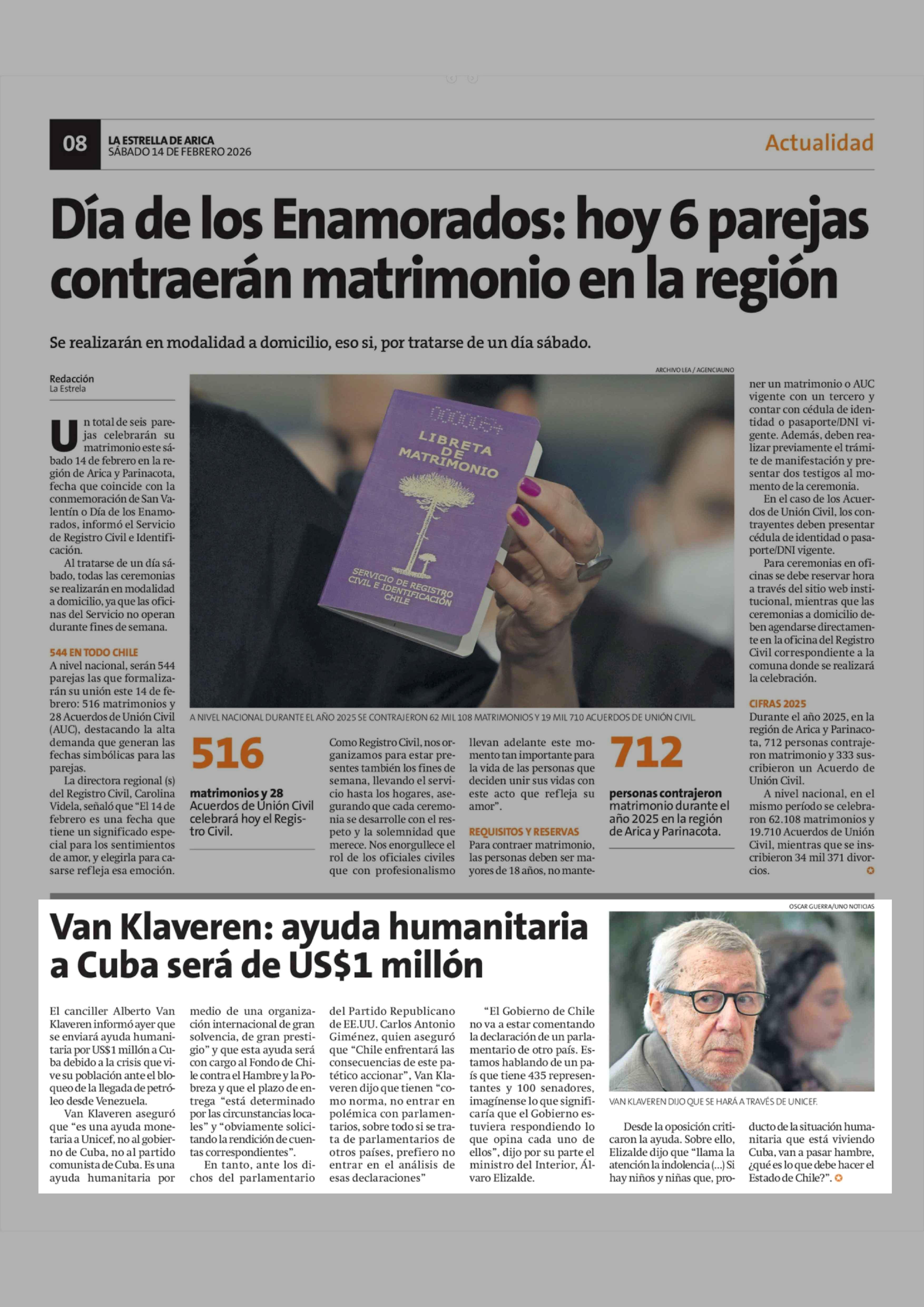 Van Klaveren: ayuda humanitaria a Cuba será de US$1 millón 14-02-2026 La Estrella de Arica |